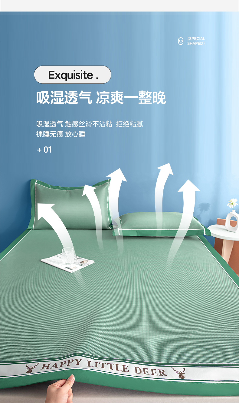 阿亮家居 2025新款A类母婴级1800D碳光小鹿冰丝席凉席 繁星绿
