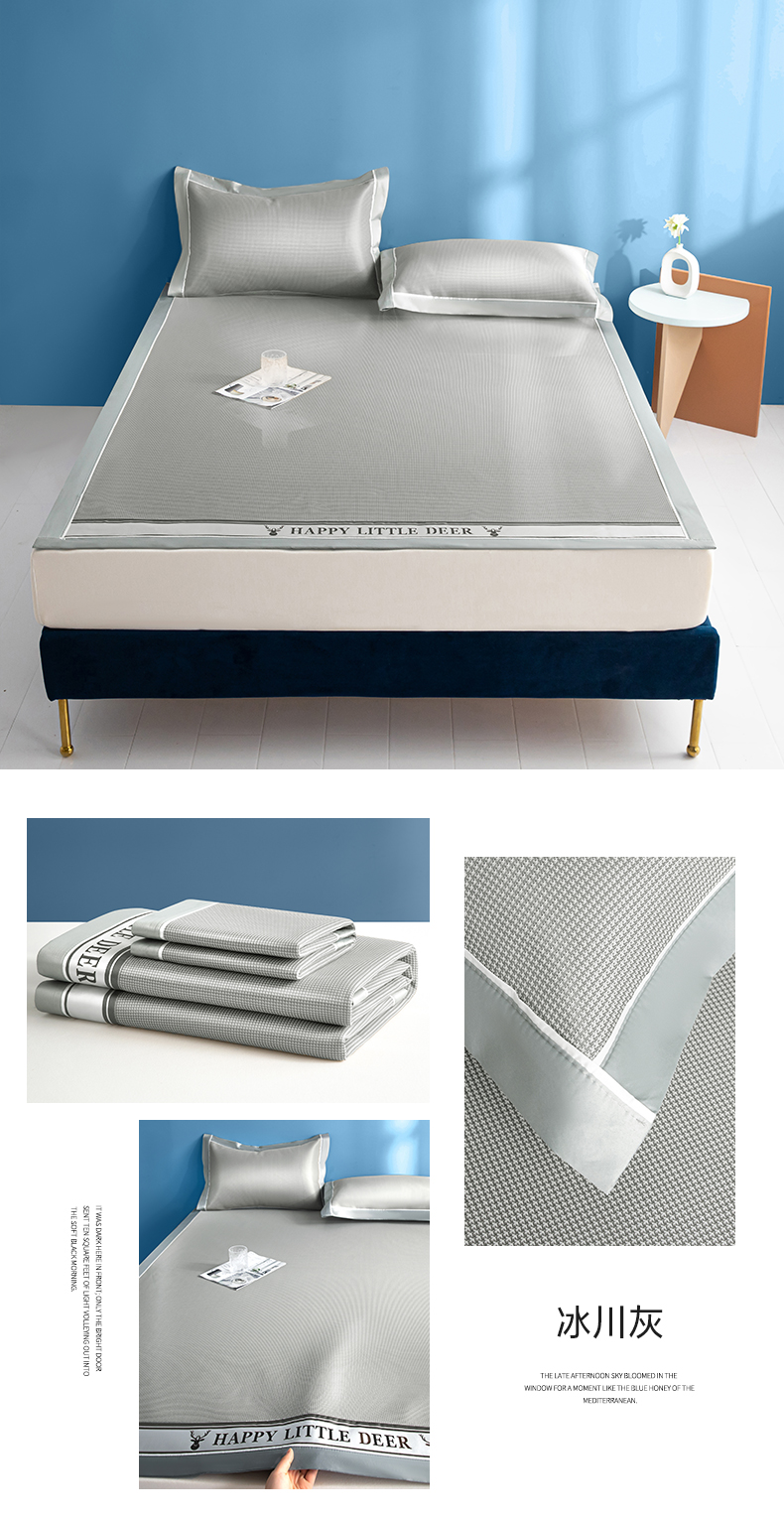 (总)阿亮家居 2025新款A类母婴级1800D碳光小鹿冰丝席凉席,宾利蓝,冰川灰,繁星绿,山茶粉,香槟金