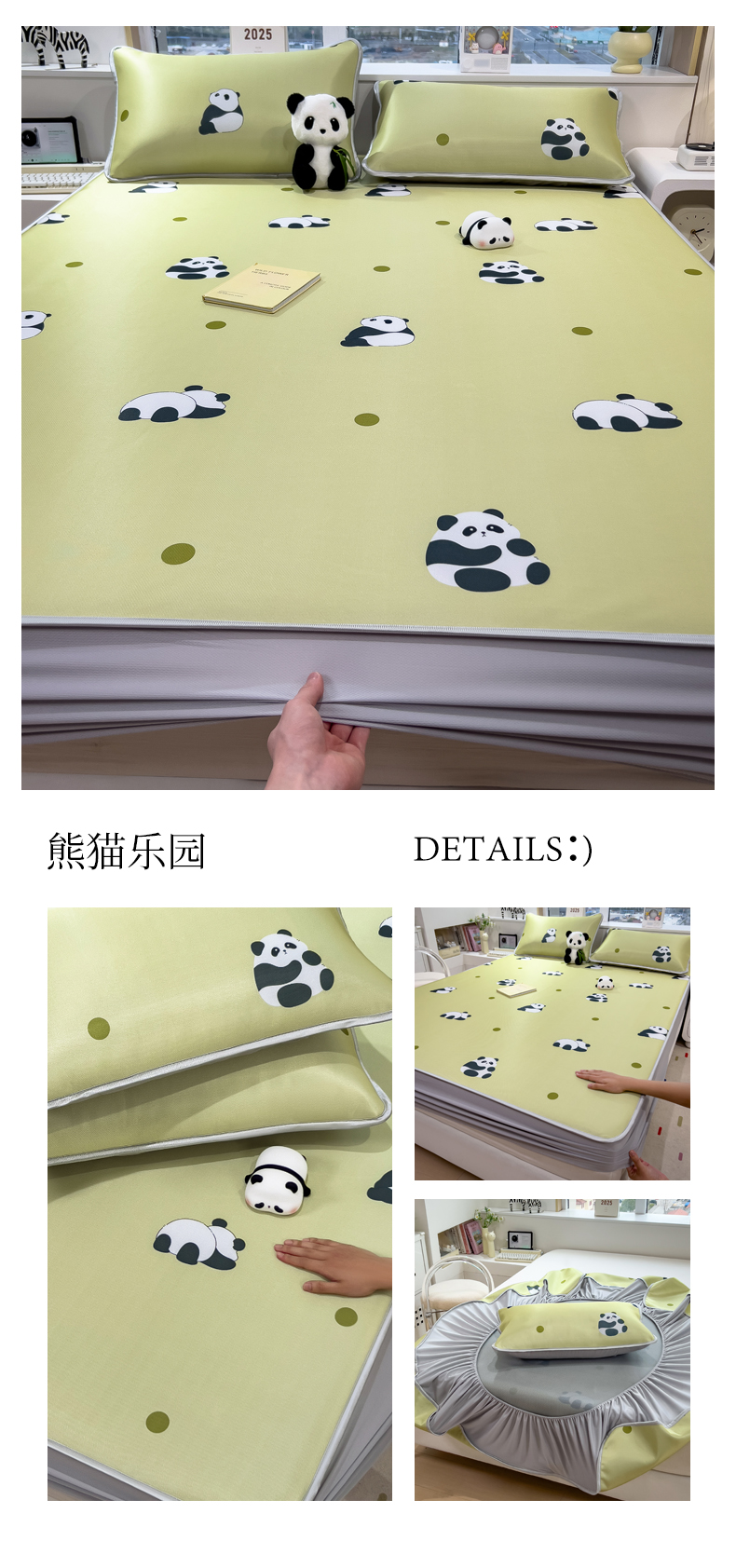商品名称:丝羽坊 2025新款小版印花冰丝凉席冰丝席碳光冰丝凉席-床笠款 熊猫乐园