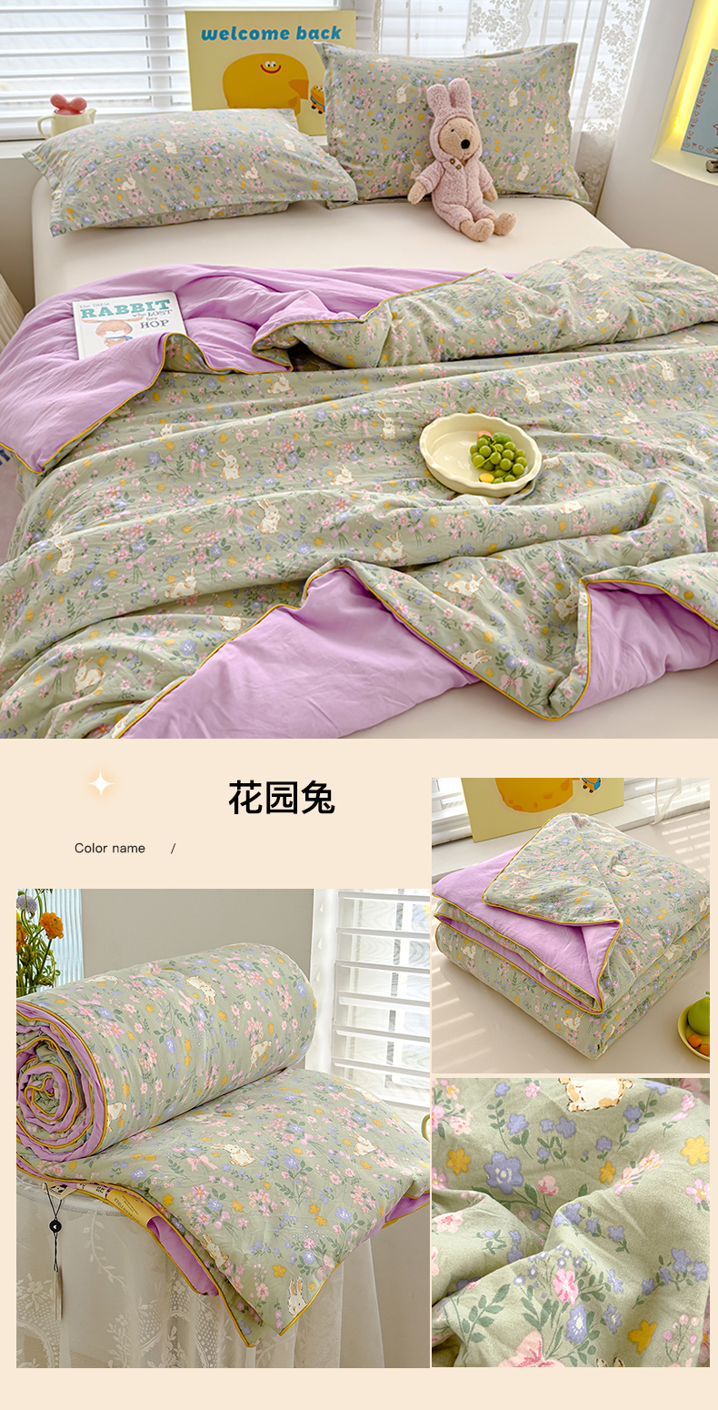 商品名称:星巴k家纺 2025新款A类水洗双层纱大豆纤维夏被夏凉被空调被 花园兔
