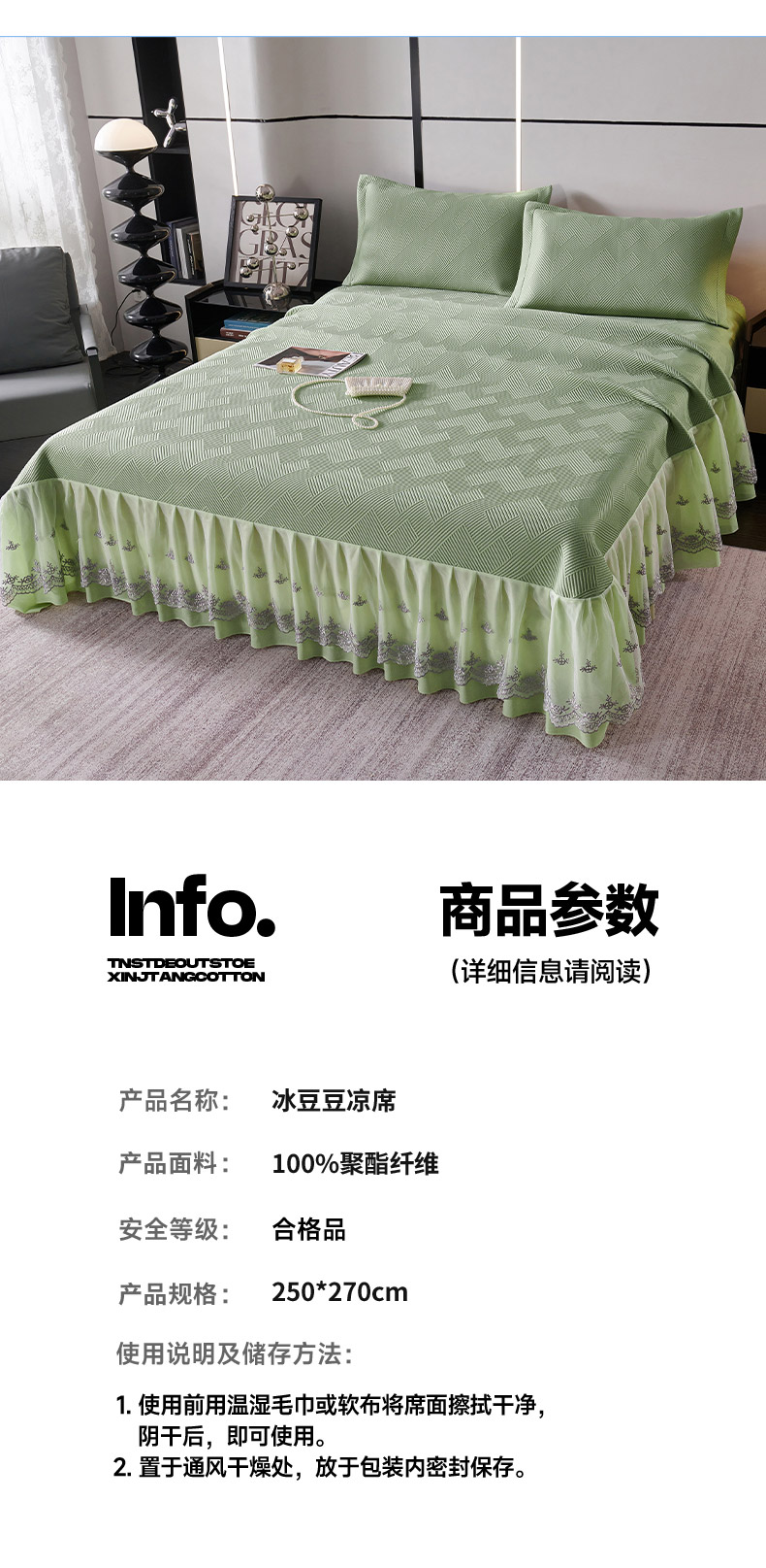 商品名称:梵克保罗 2025新款7A抗菌母婴级纯乙纶PE刺绣凉感丝豆豆席床单款 肌理纹-灰
