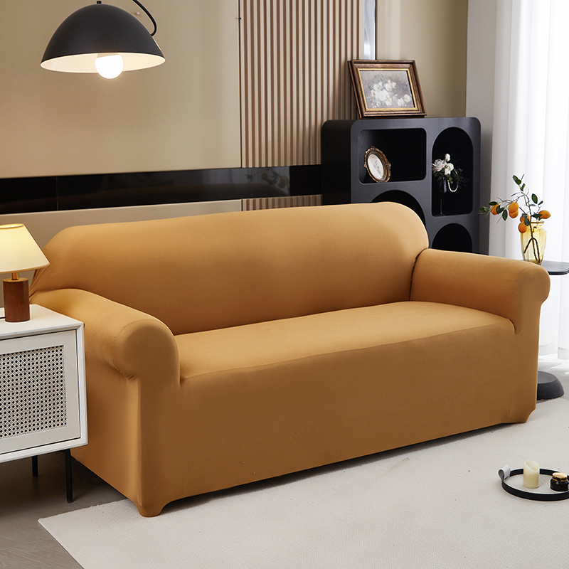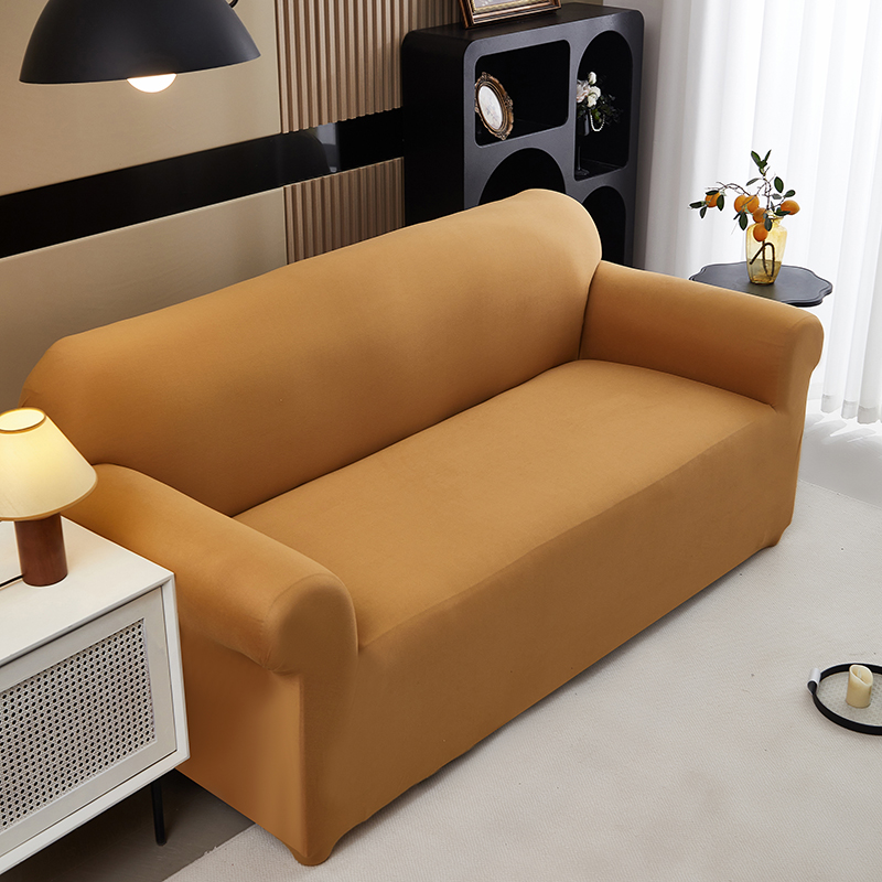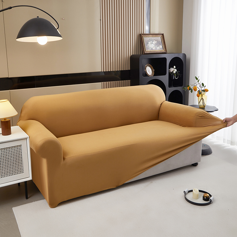 共鸣沙发套 新款牛奶丝覆膜防水纯色系列沙发套 焦糖色
