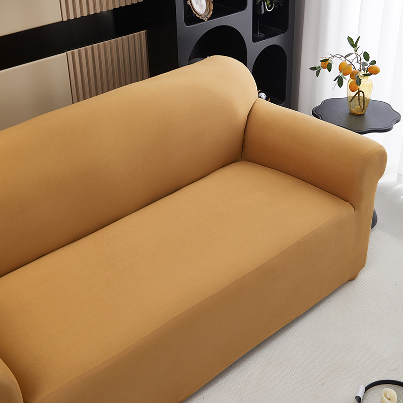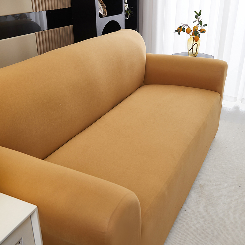 商品名称:共鸣沙发套 新款牛奶丝覆膜防水纯色系列沙发套 焦糖色