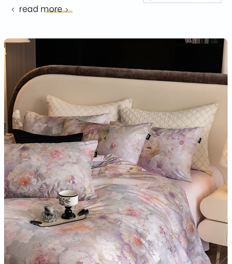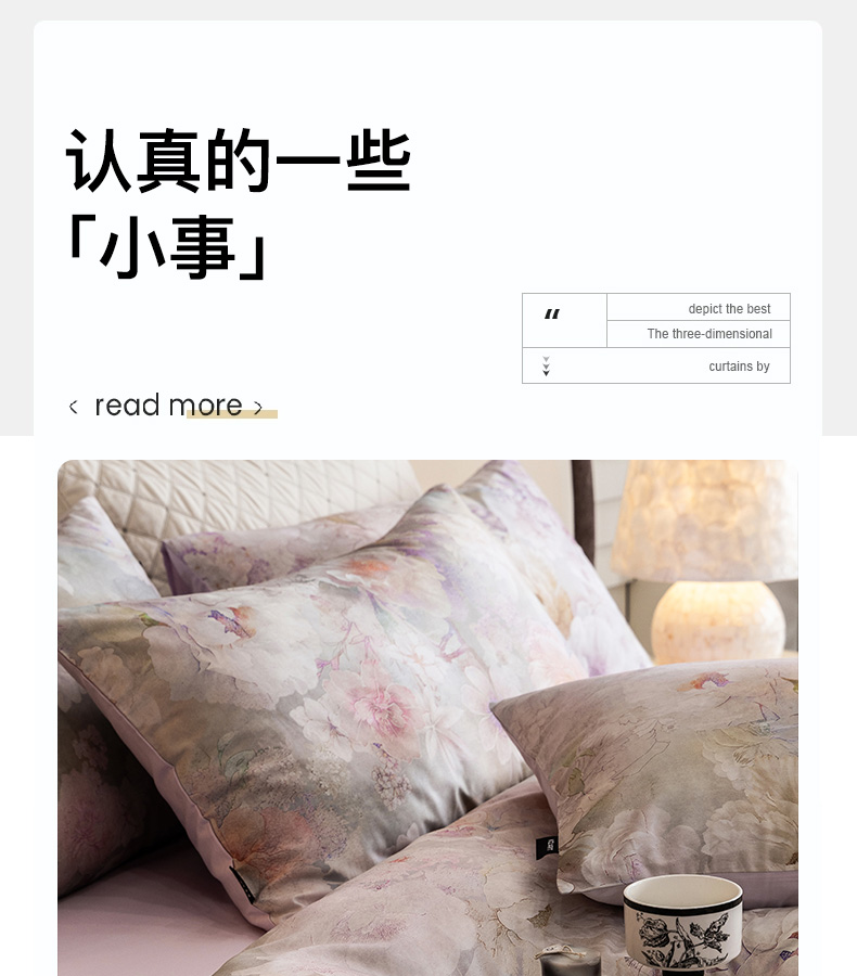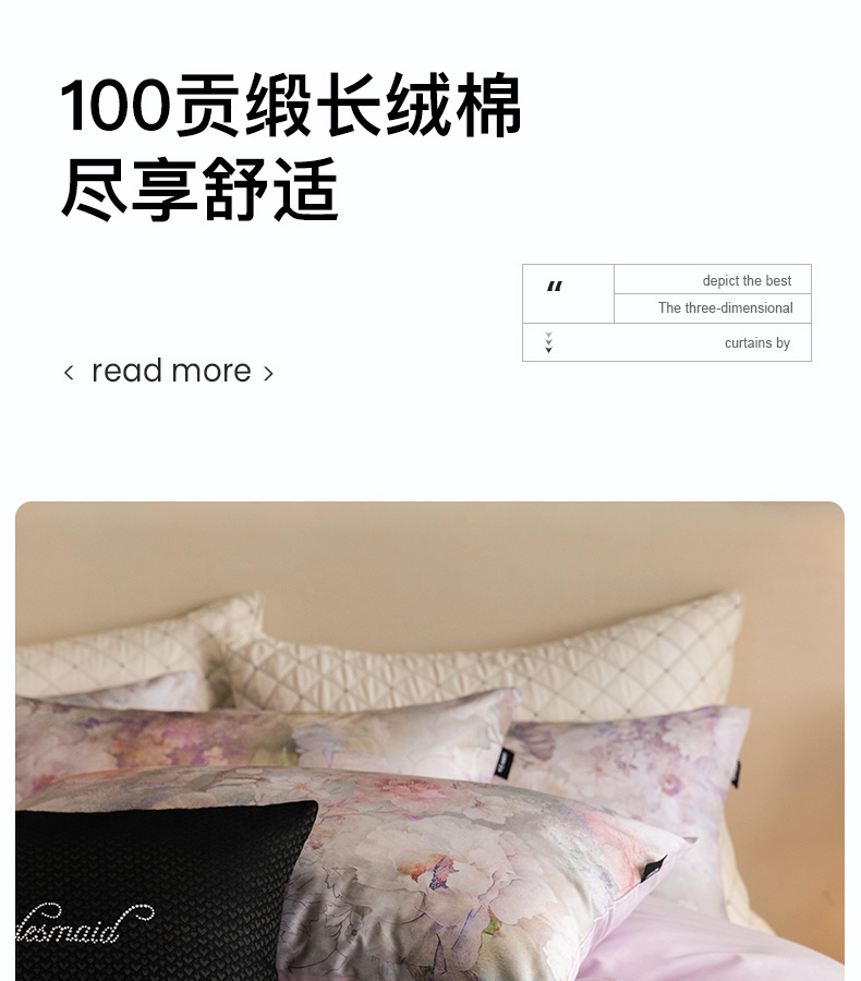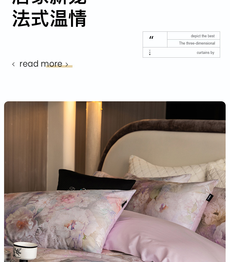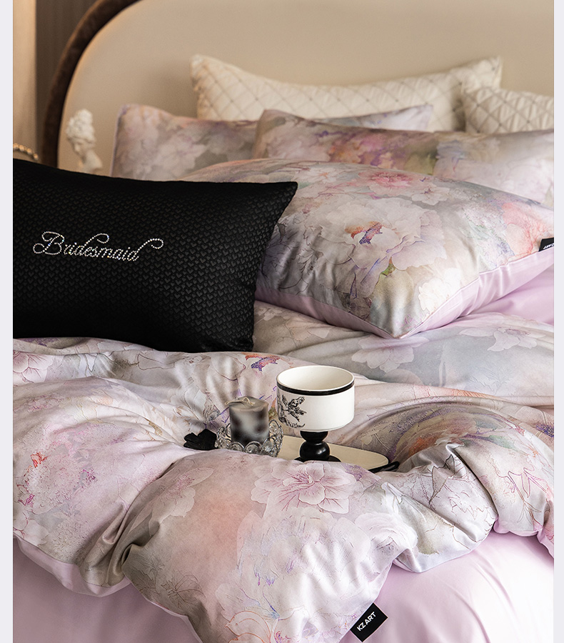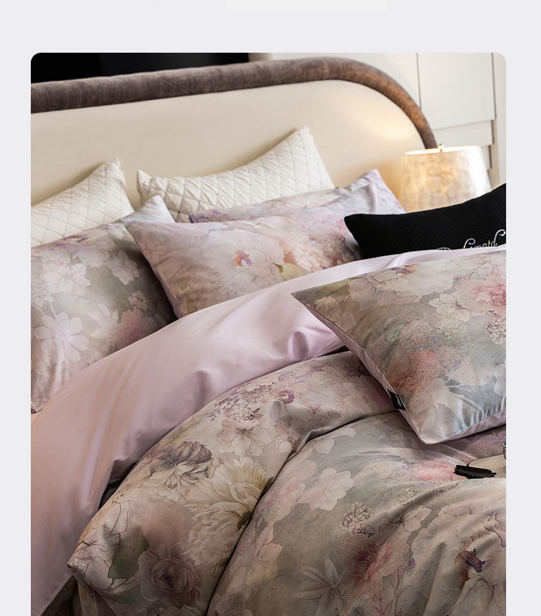 佳汐蓝家纺 2025新款春夏100贡缎长绒棉数码印花四件套 闲云归处-粉