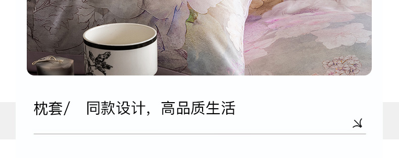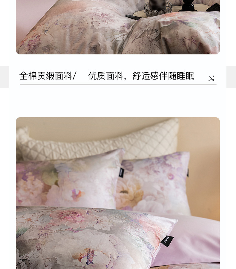 商品名称:佳汐蓝家纺 2025新款春夏100贡缎长绒棉数码印花四件套 闲云归处-粉