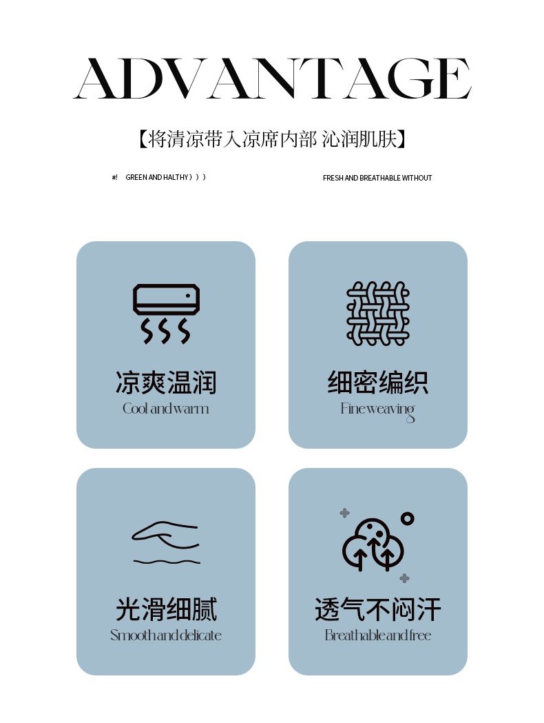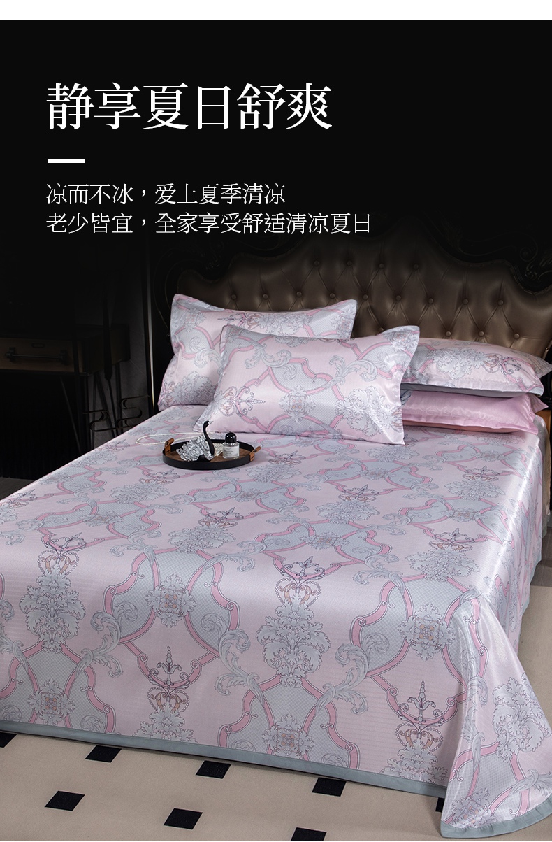 肖恩毯业 2025新款印花斜纹冰丝席三件套 青柠之夏