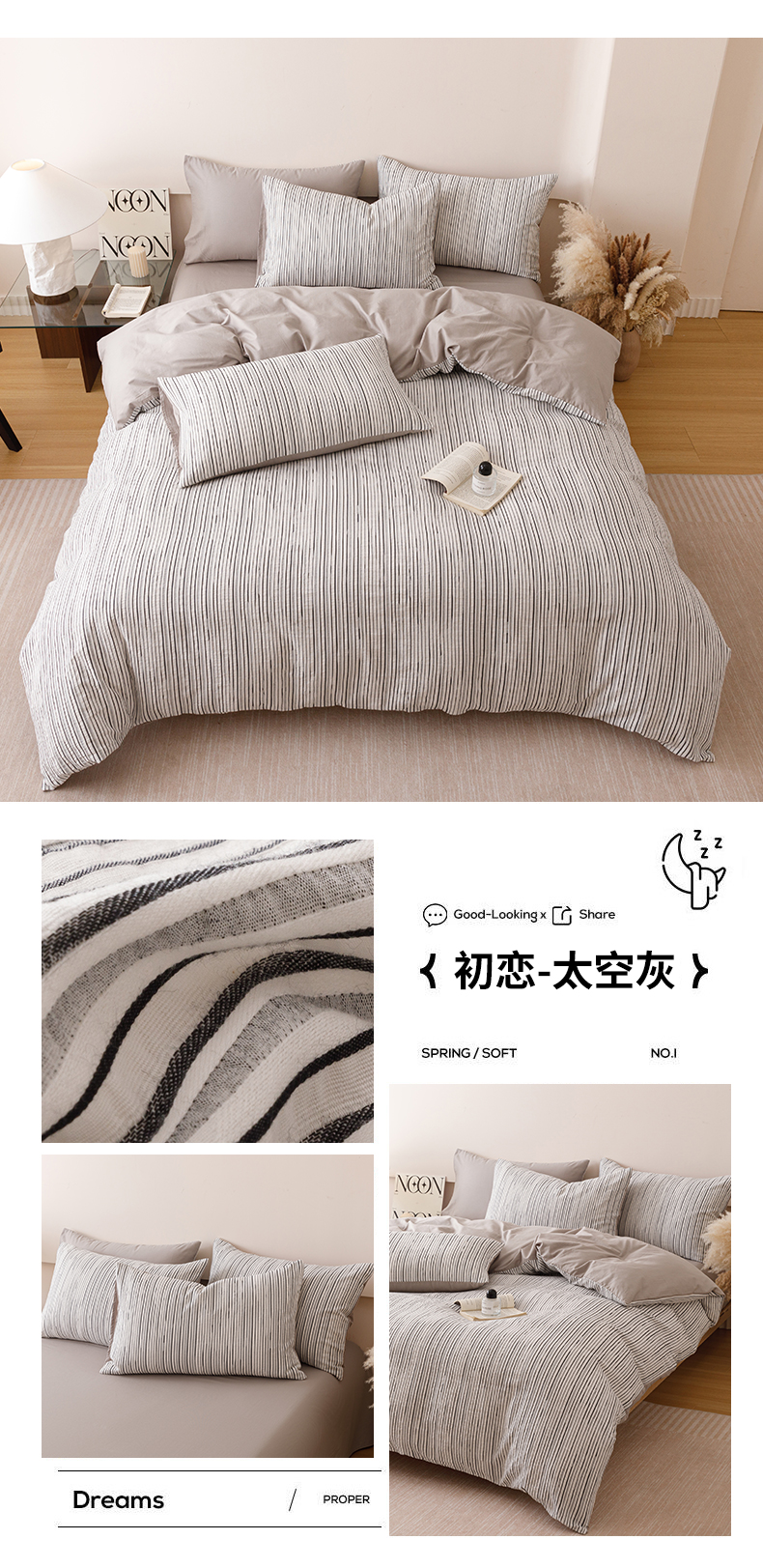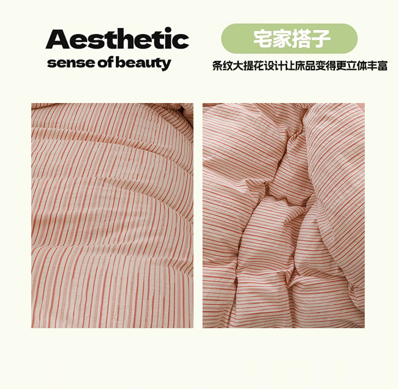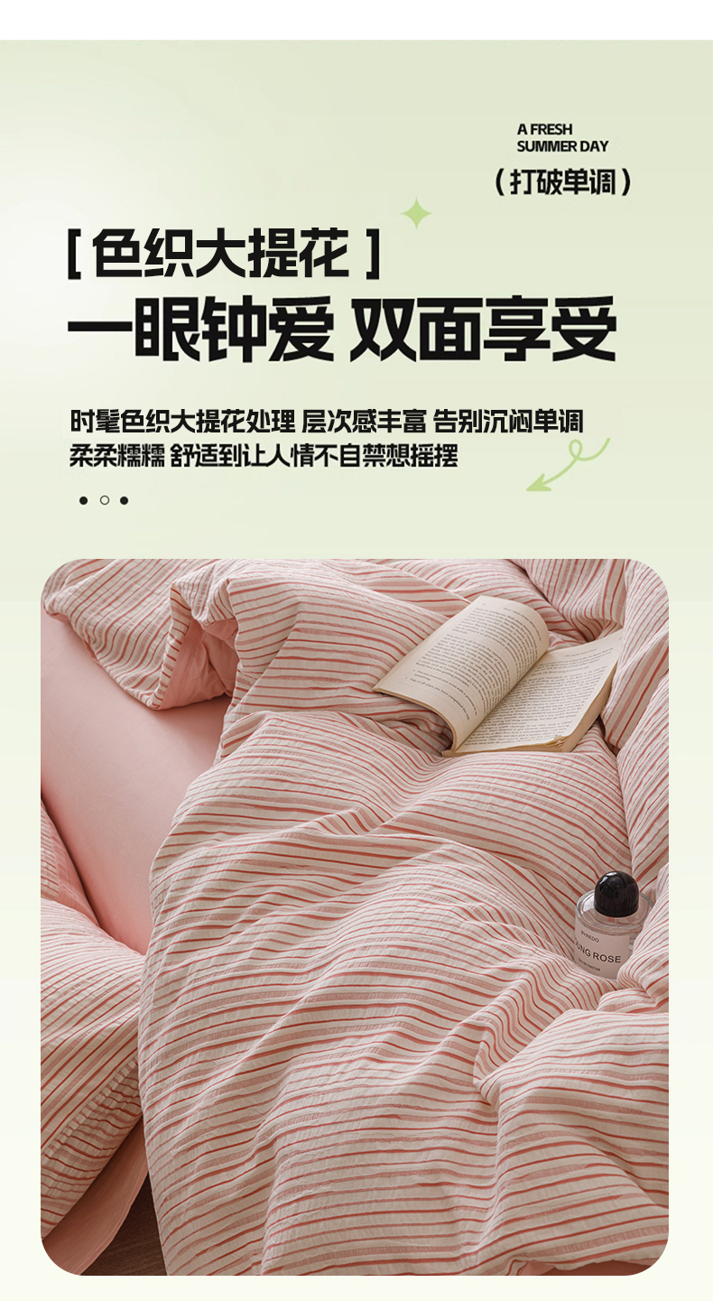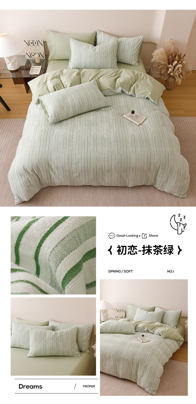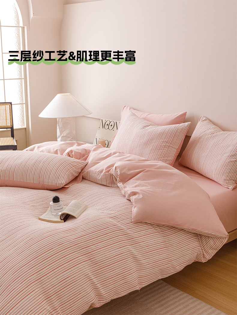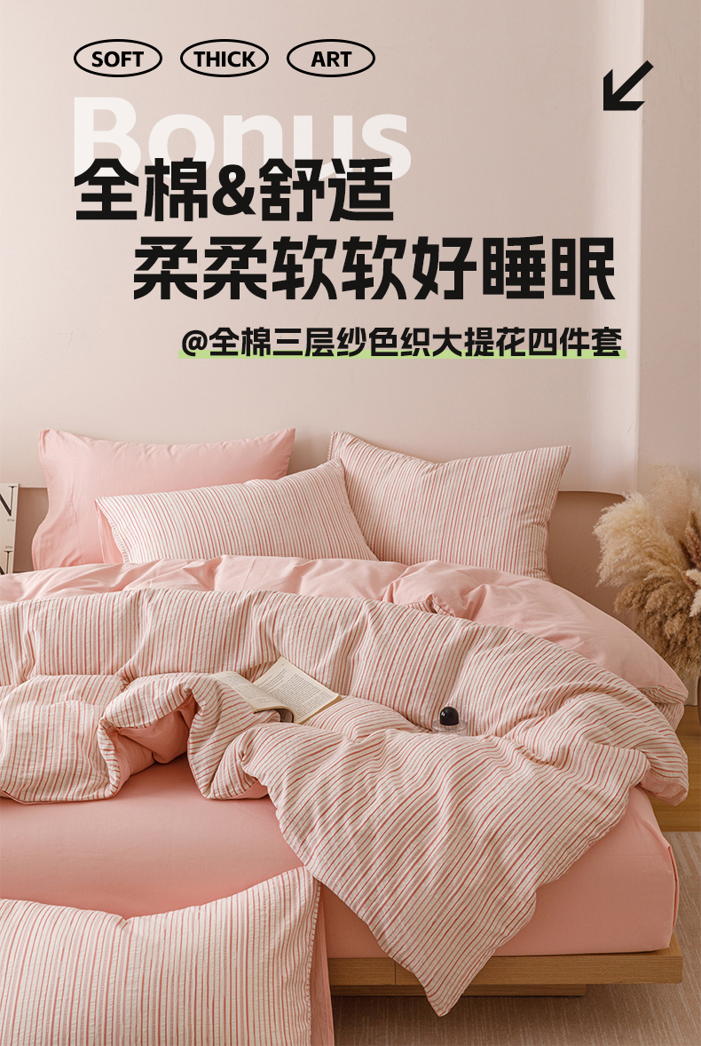 (总)忆生活家纺 2025新款全棉三层纱色织大提花条纹款四件套,初恋-樱花粉,初恋-宝石蓝,初恋-抹茶绿,初恋-奶咖色,初恋-太空灰