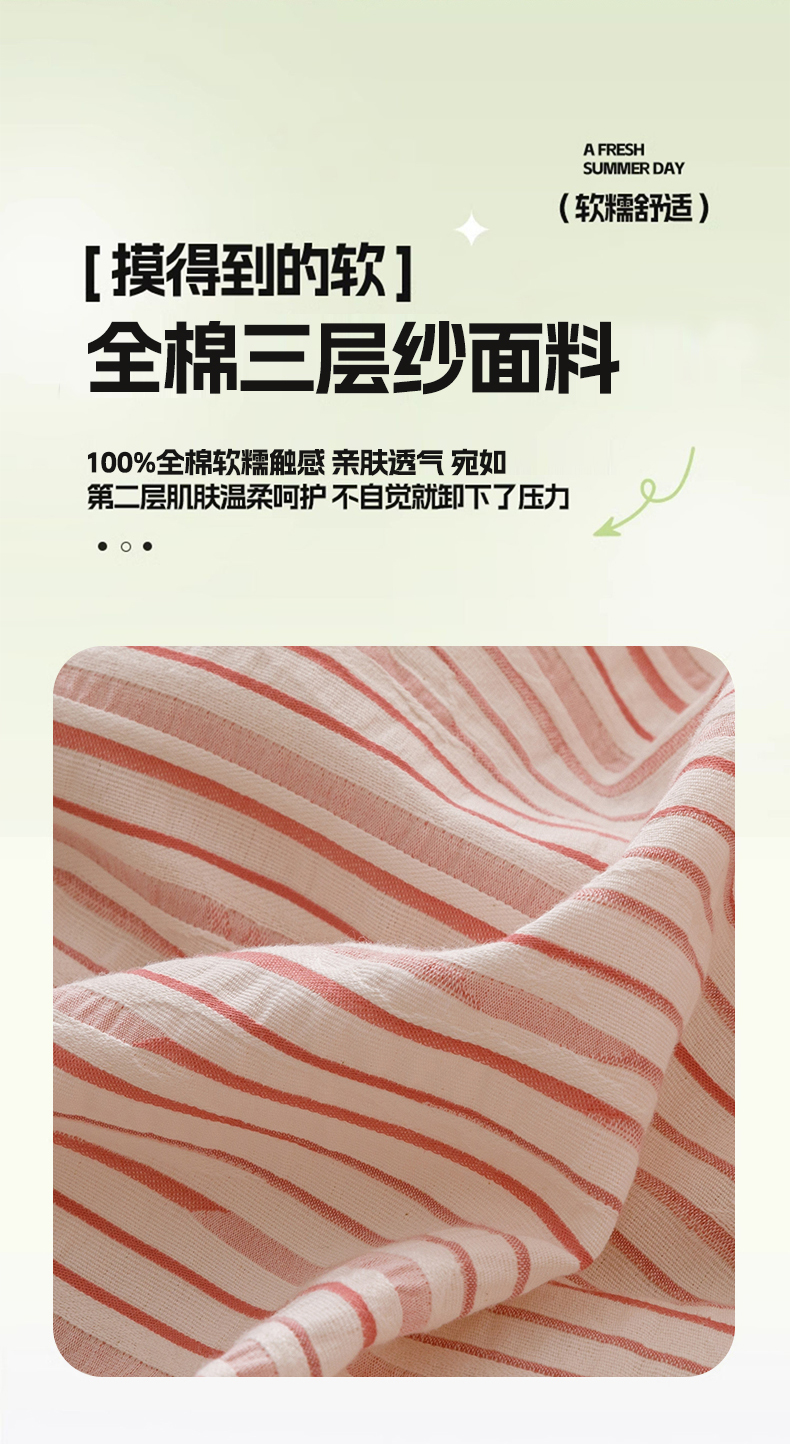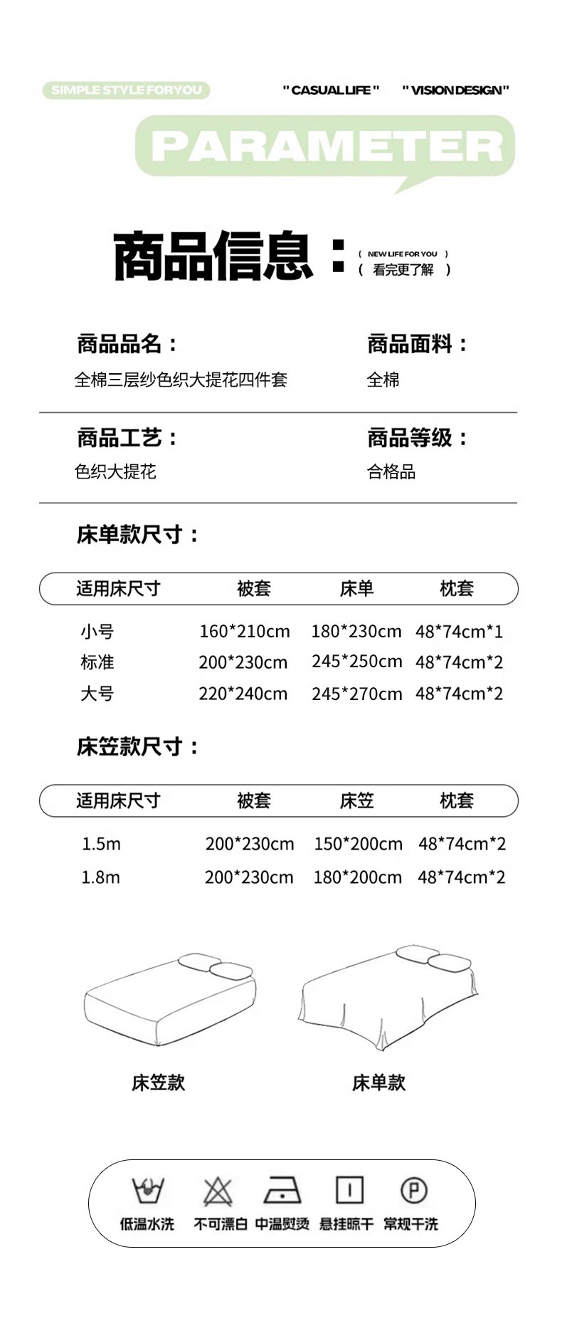 商品名称:(总)忆生活家纺 2025新款全棉三层纱色织大提花条纹款四件套