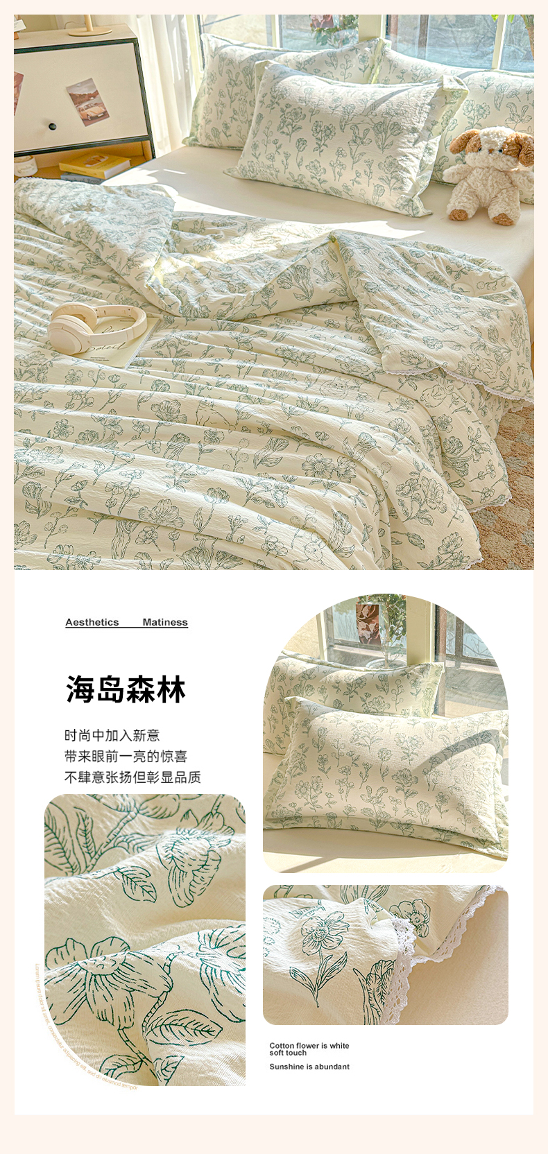 • 91家纺网 家纺一手货源 找家纺 创优  2025新款有氧双层纱小清新印花小花边夏被夏凉被可机洗空调被子被芯 海岛森林