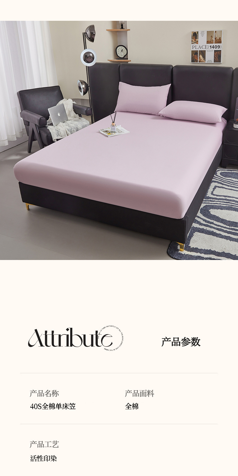 • 91家纺网 家纺一手货源 找家纺 2025新款40S斜纹13372全棉纯色床笠 40S胭脂粉