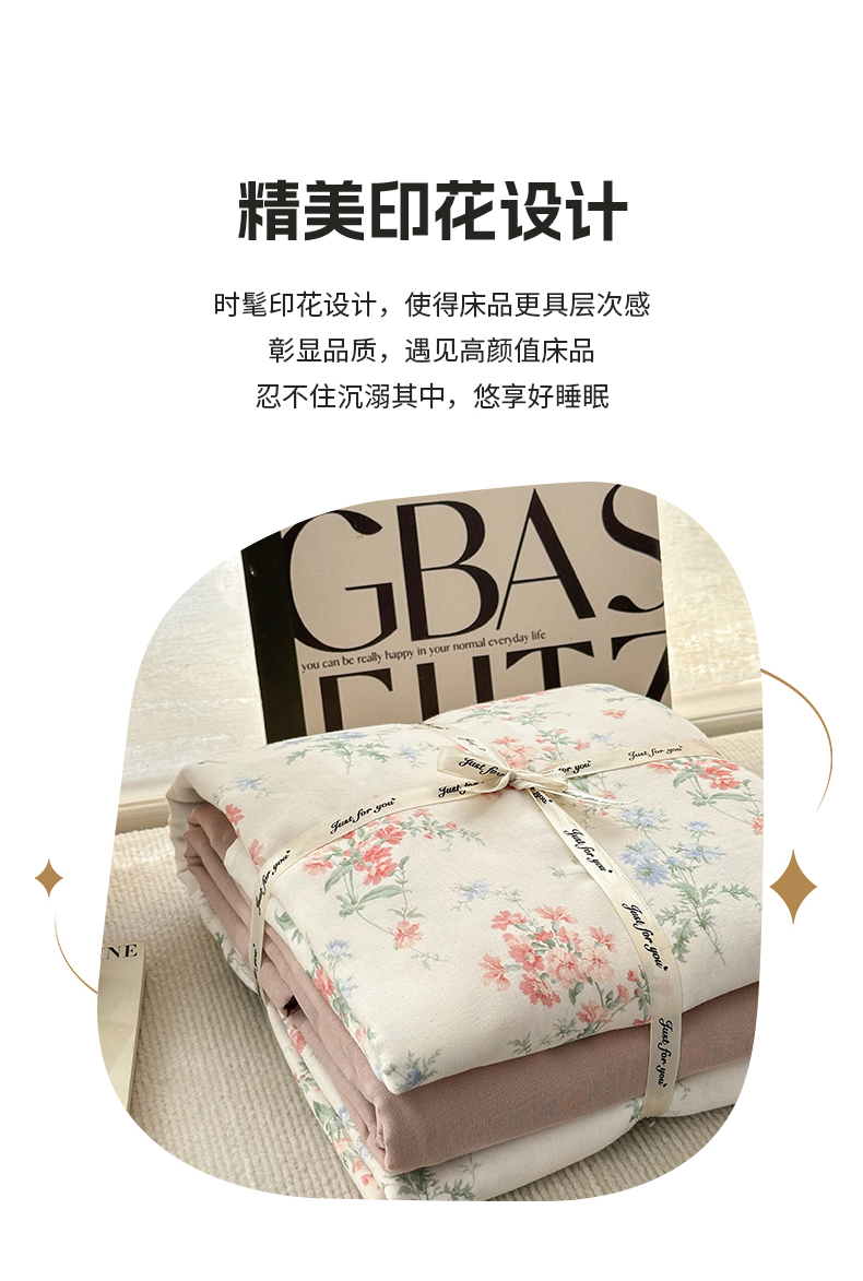 商品名称:曲之慕2025新款A类母婴级有氧全棉纯棉双层纱印花四件套 芳若-米
