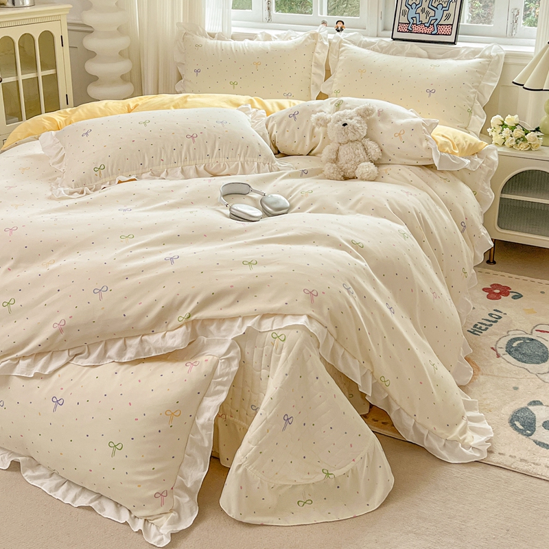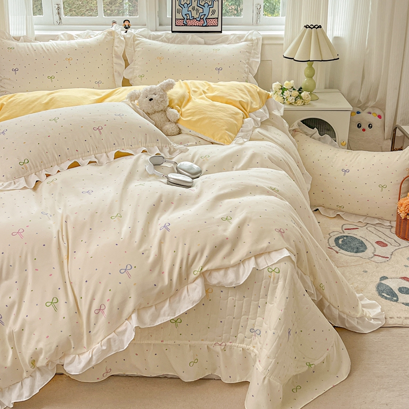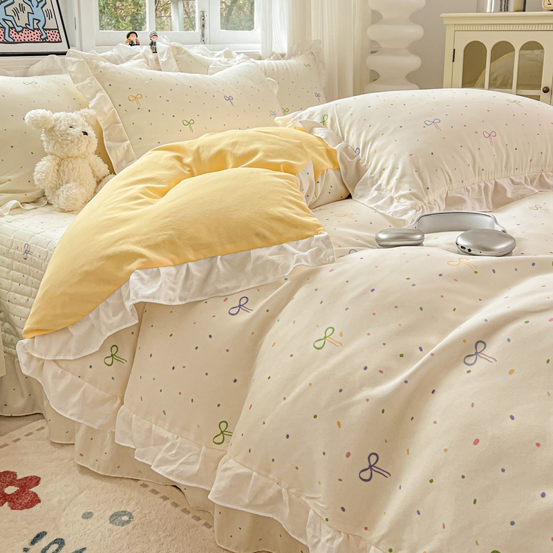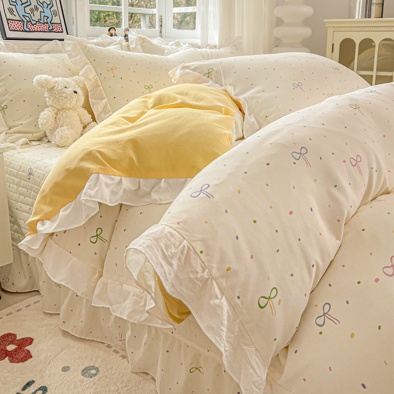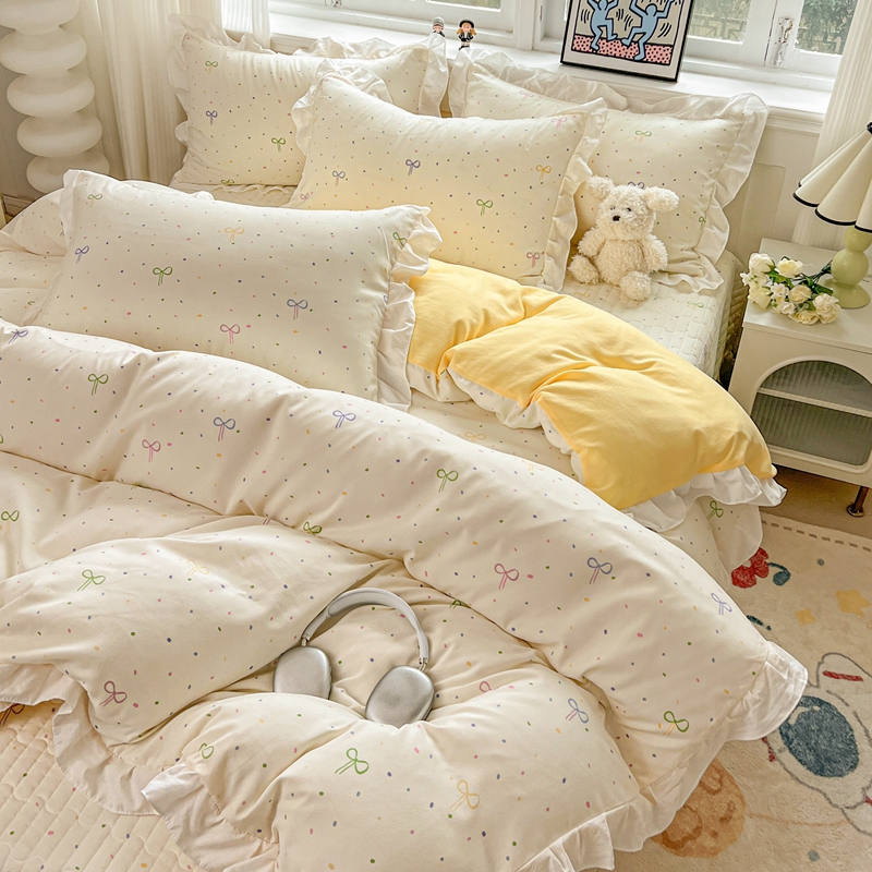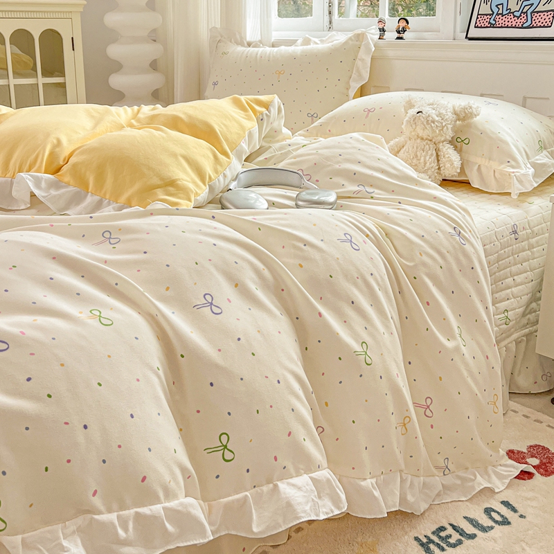 当前位置: 91家纺网 > 商品网购 > 床品套件 > 四件套 > 双层纱四件套 > 麦朵家居2025新款双层纱针织棉床盖款四件套 多彩领结