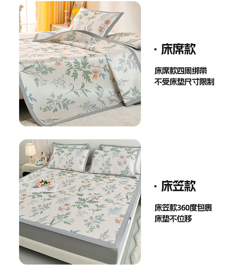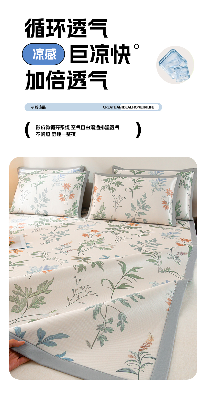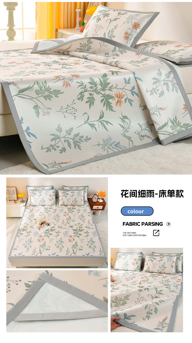 商品名称:简一 2025新款A类碳光印花数码冰丝凉席系列-床笠款 花间细雨