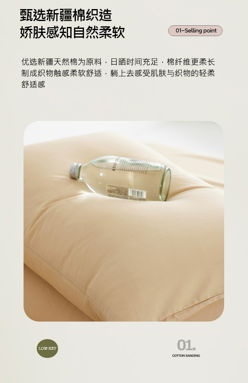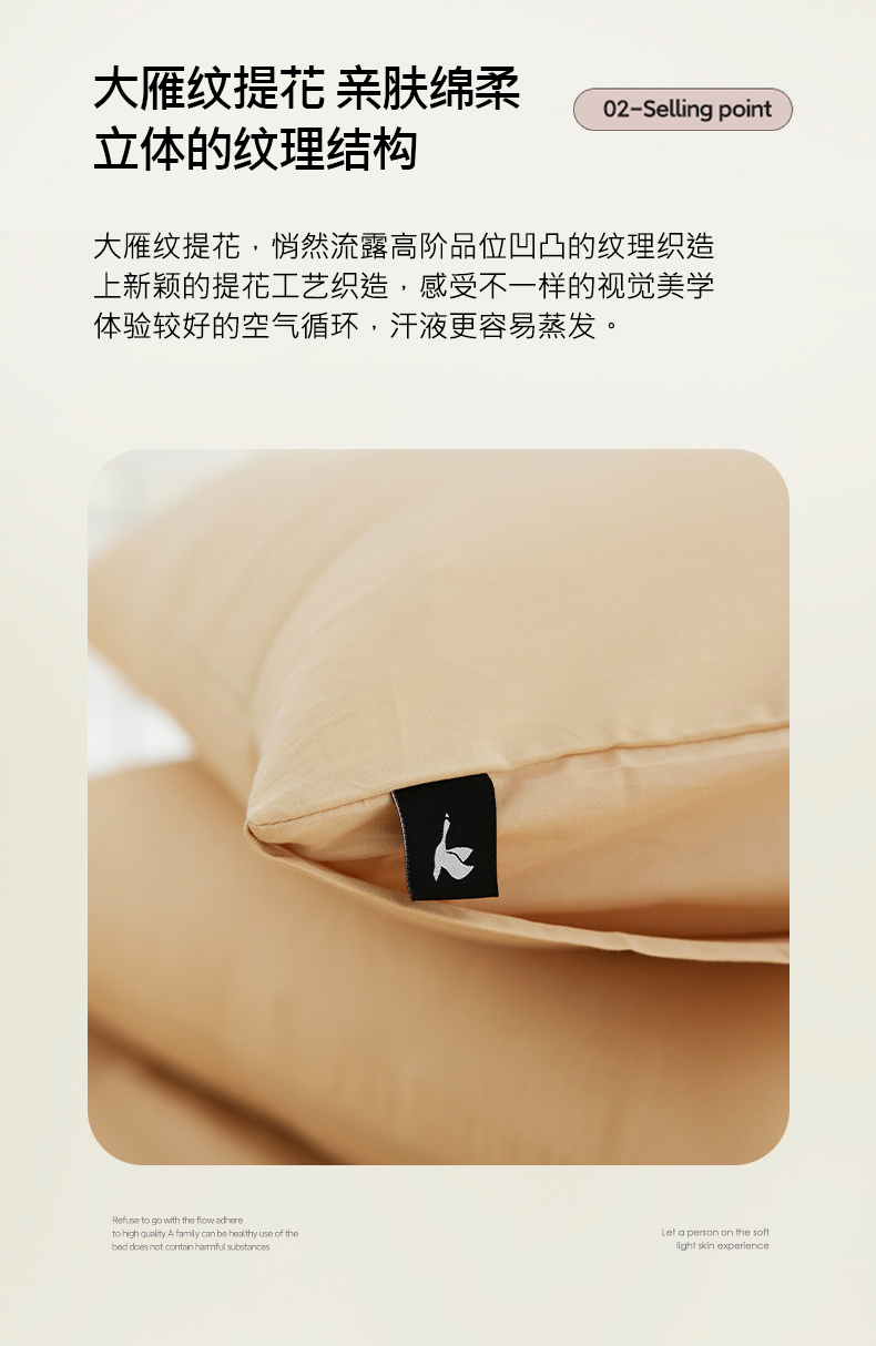 商品名称:风向标家纺 2025新款A类40S全棉糯感大雁纹提花单品枕套 奶茶