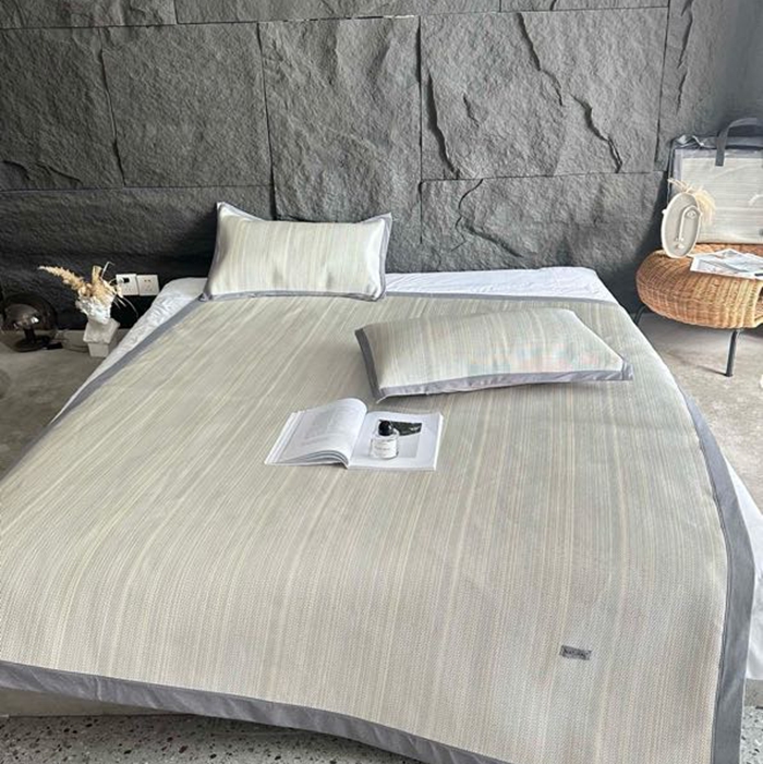 美丽坊 2025新款轻奢三明治冰藤抗菌凉席三件套 简森灰,简森灰