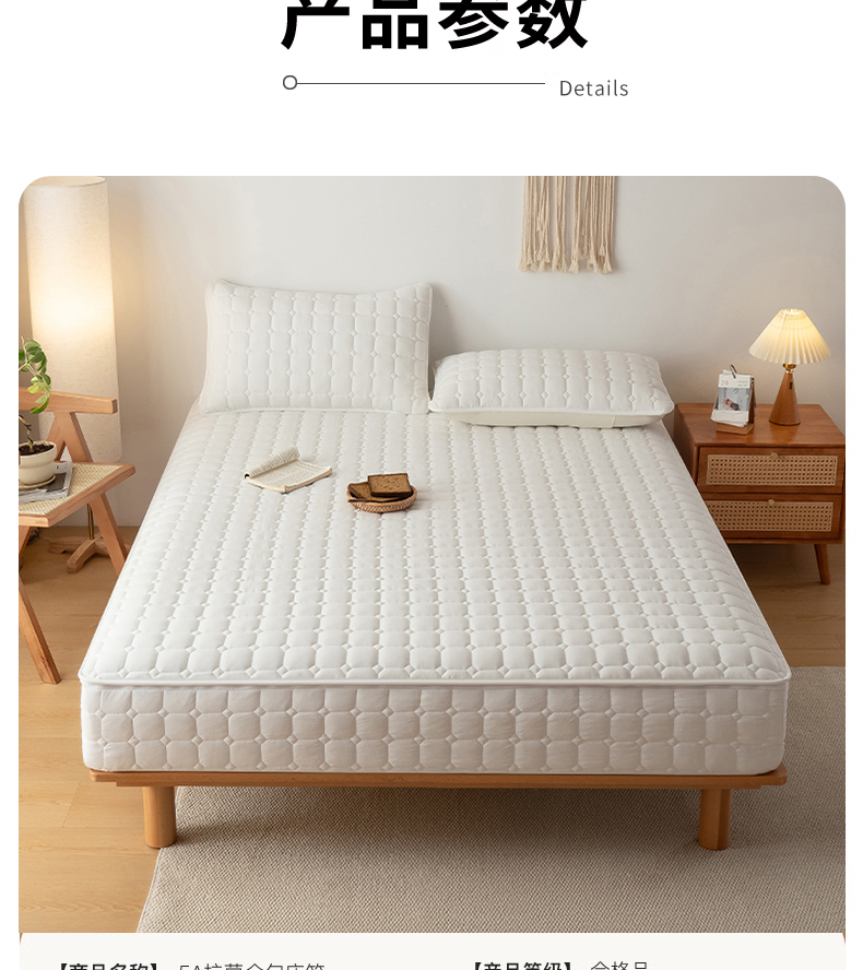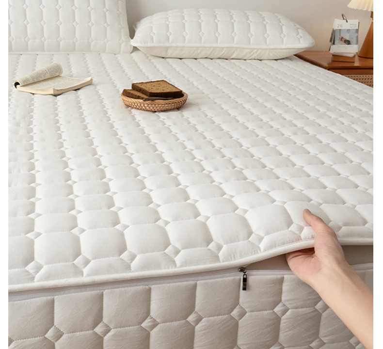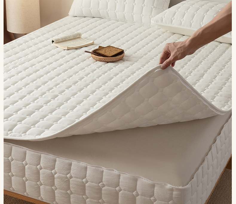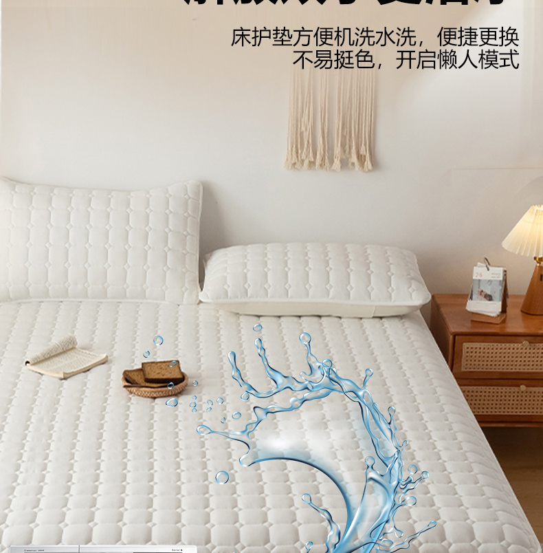 • 91家纺网 家纺一手货源 找家纺 叠派家纺 2025新款5A抗菌A类夹棉床笠经典款防水款系列 五面夹棉-经典格荧月白