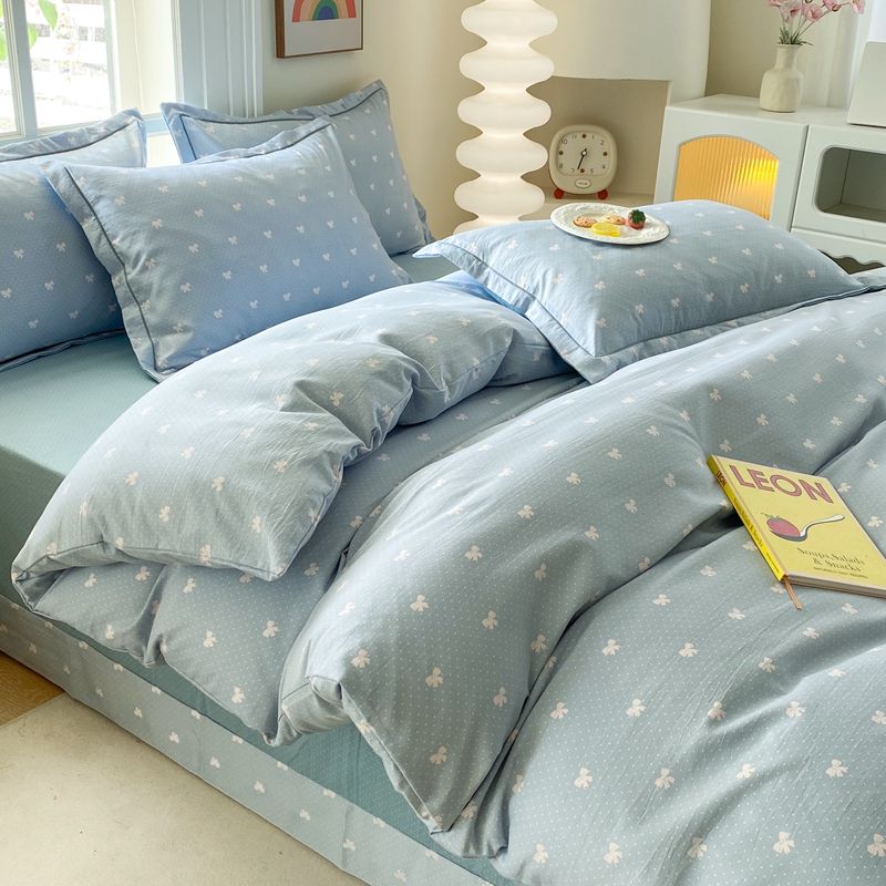 当前位置: 91家纺网 > 商品网购 > 床品套件 > 四件套 > 其它四件套 > 包小包 2025新款简约时尚印花精梳棉小奶棉清新四件套 浪漫之旅