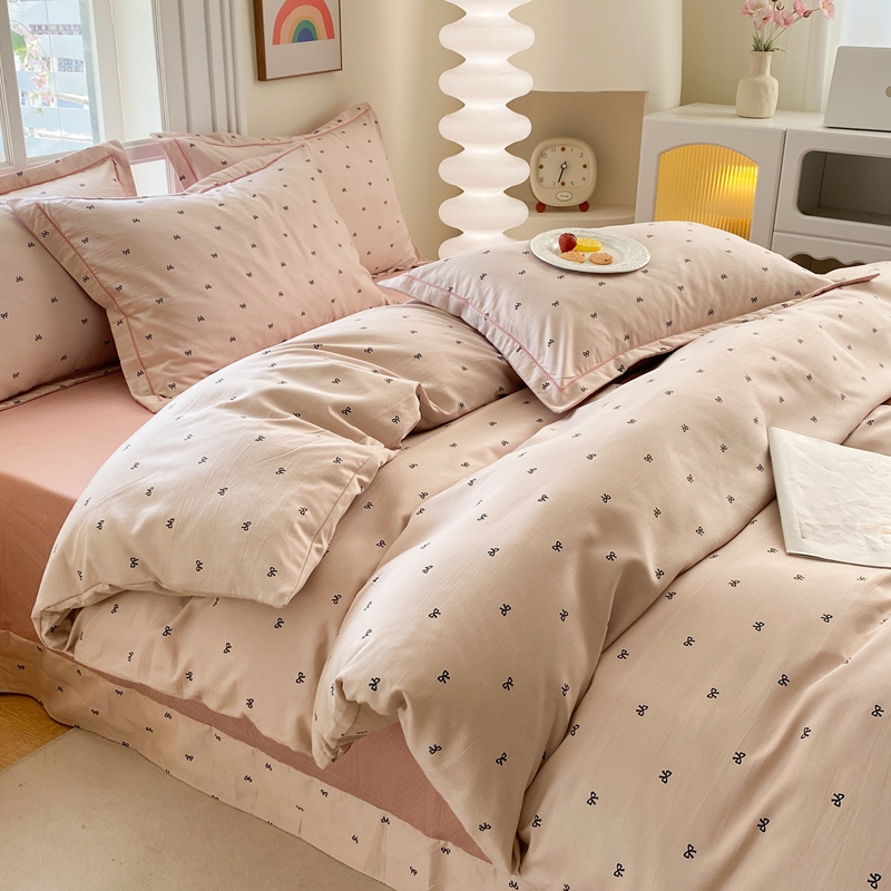 当前位置: 91家纺网 > 商品网购 > 床品套件 > 四件套 > 其它四件套 > 包小包 2025新款简约时尚印花精梳棉小奶棉清新四件套 叶芝少女(豆沙)