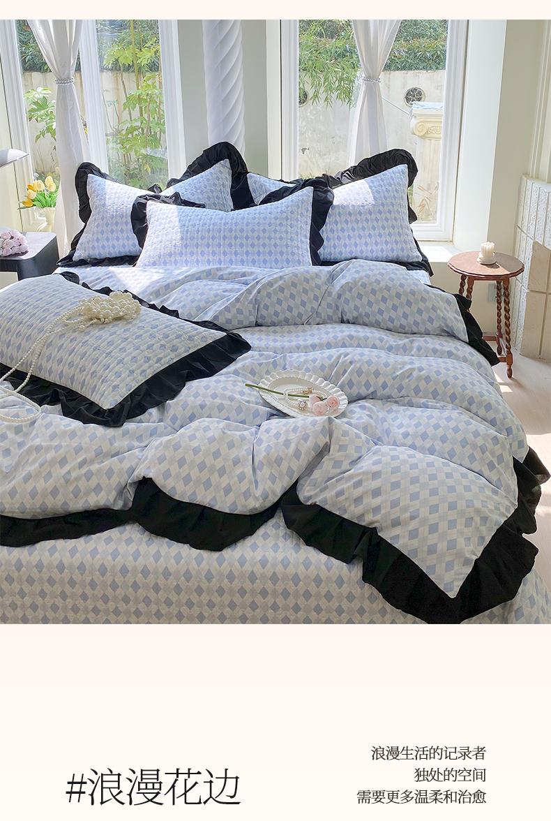 商品名称:慕希 2025新款水洗棉花边夏被款夏凉被空调被床盖夏被四件套 赫本-柔光蓝