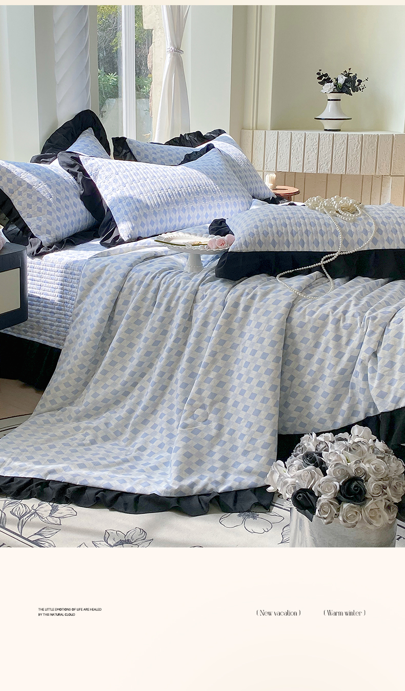 慕希 2025新款水洗棉花边夏被款夏凉被空调被床盖夏被四件套 赫本-柔光蓝