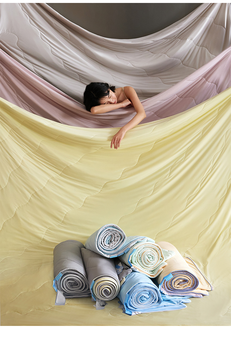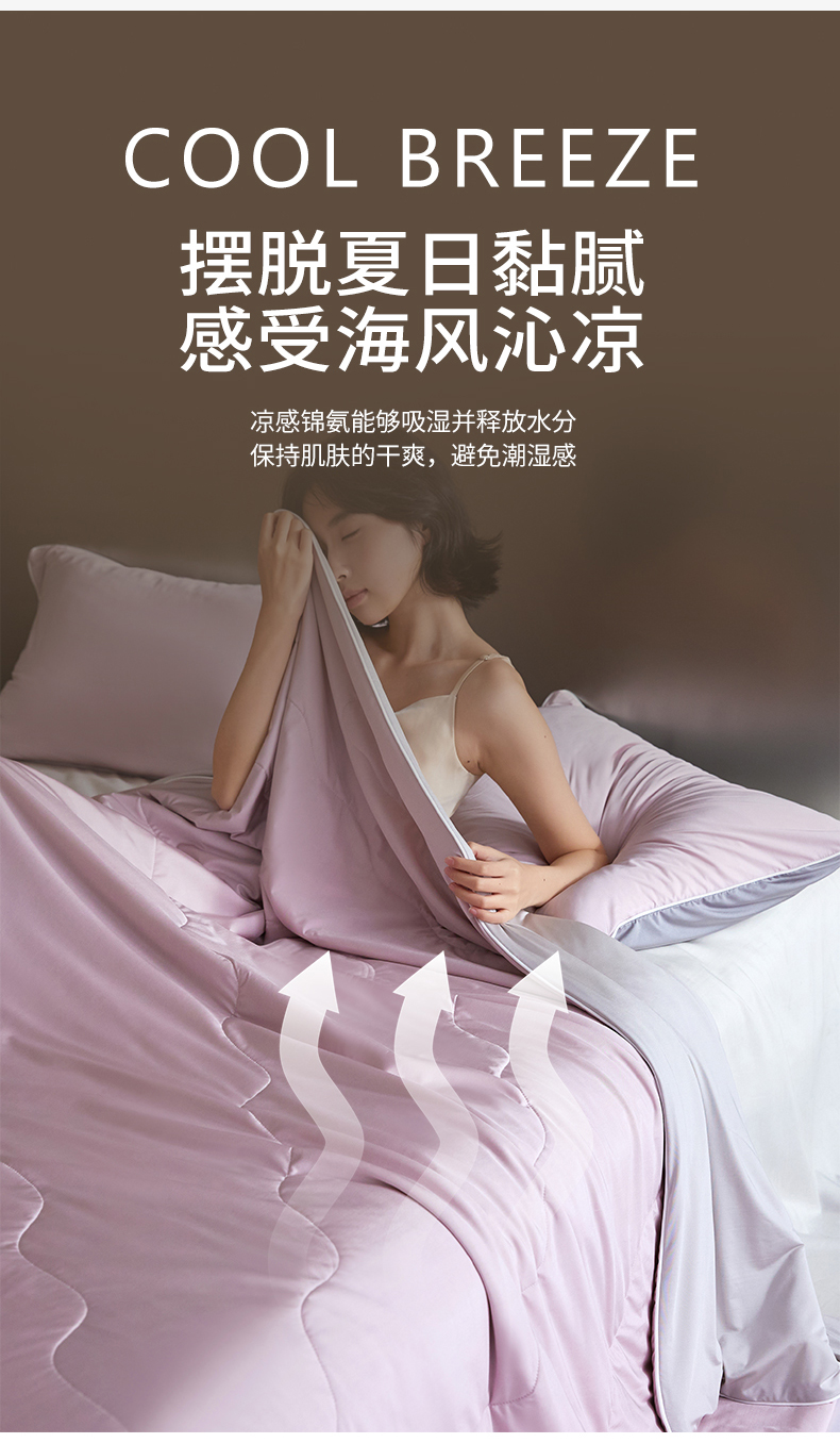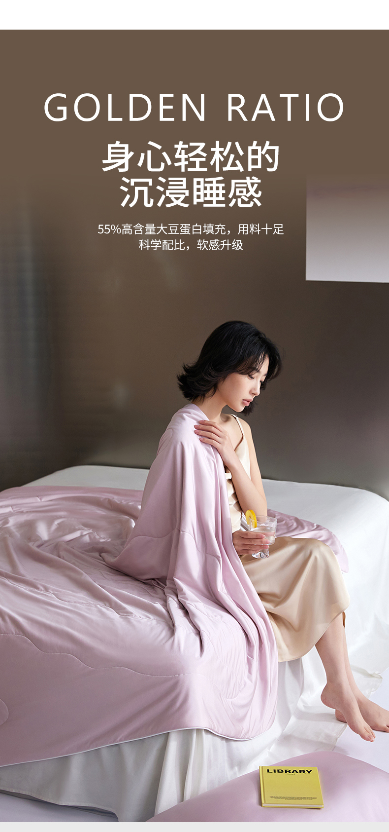 被子 > 夏被 > 头等舱 2025新款锦氨(165克)水光亮面锦A类55莱赛尔植物大豆7A抗菌夏凉被夏被(模特图) 水粉色+银灰