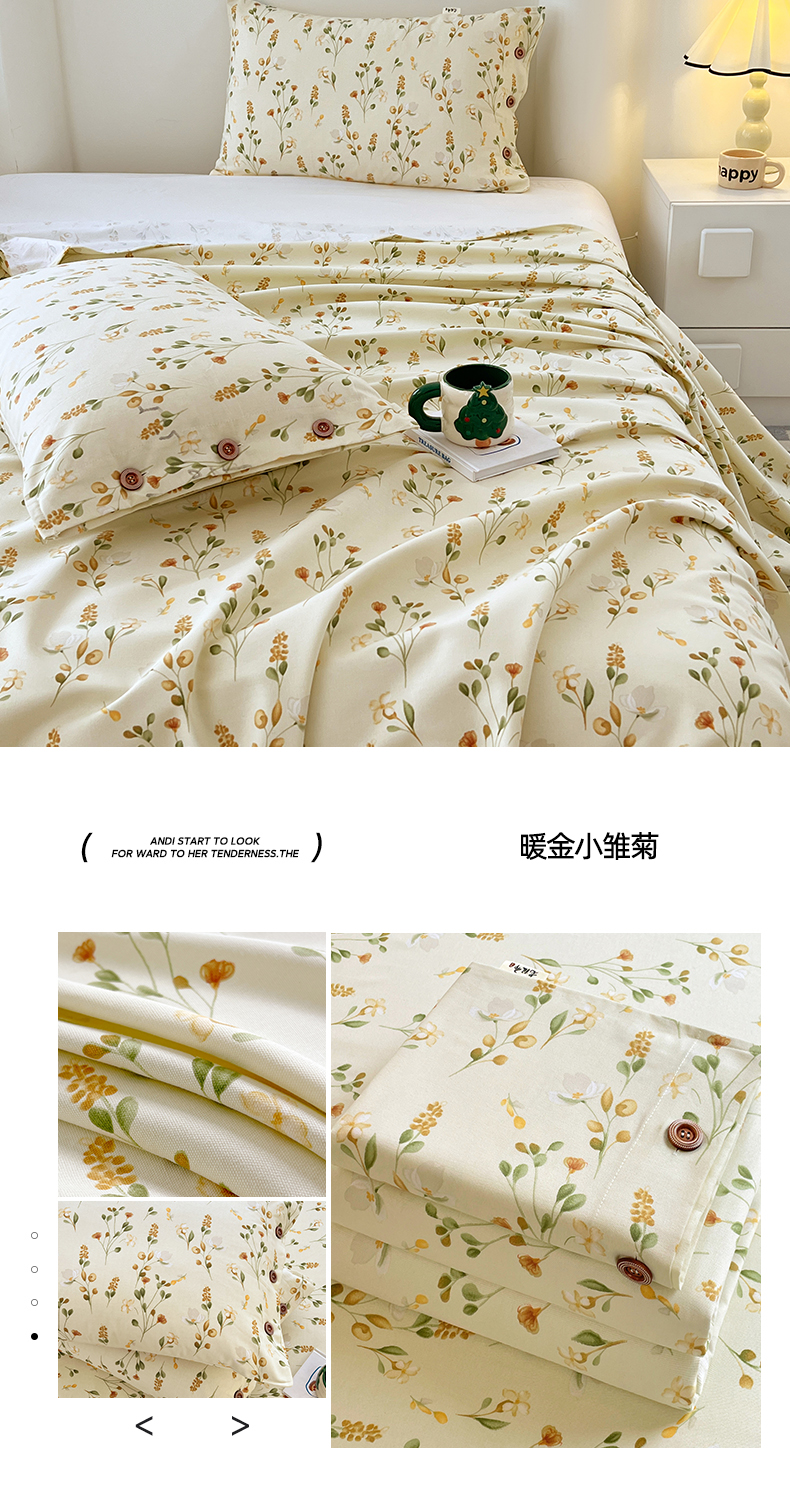 (总)2025款夏季纽扣款原棉老粗布三件套简约印花床单扣四季通用床上用品