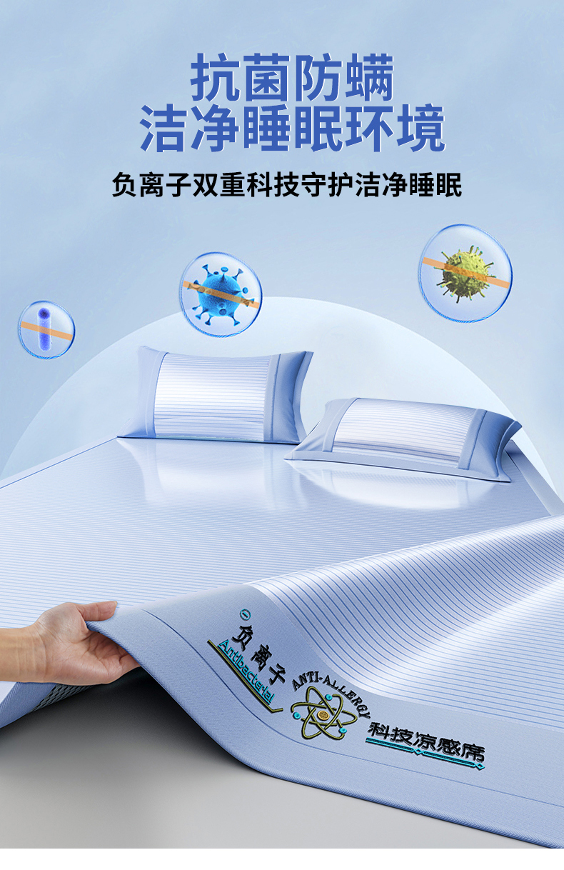 当前位置: 91家纺网 > 商品网购 > 床品套件 > 三件套 > 悠米悠家 2025新款负离子+抗菌系列凉席床笠三件套 负离子蓝色