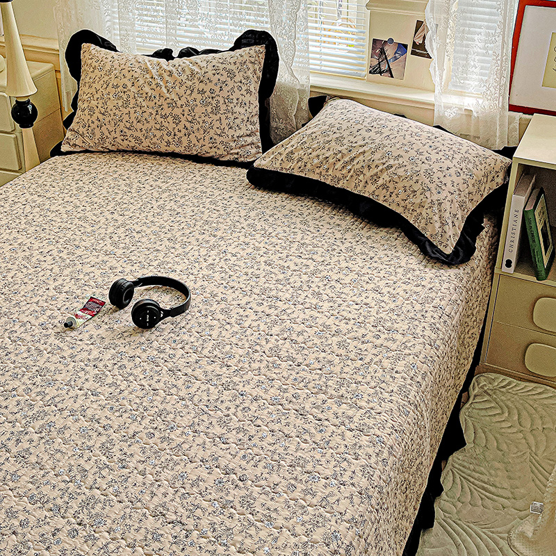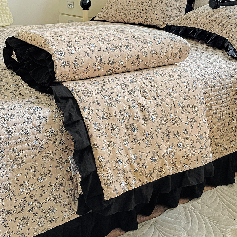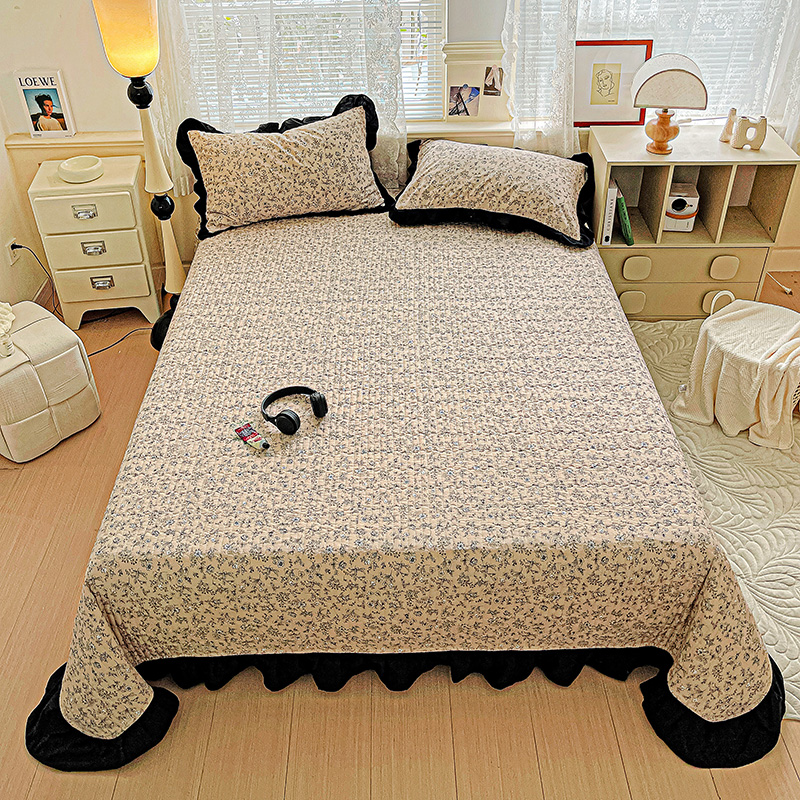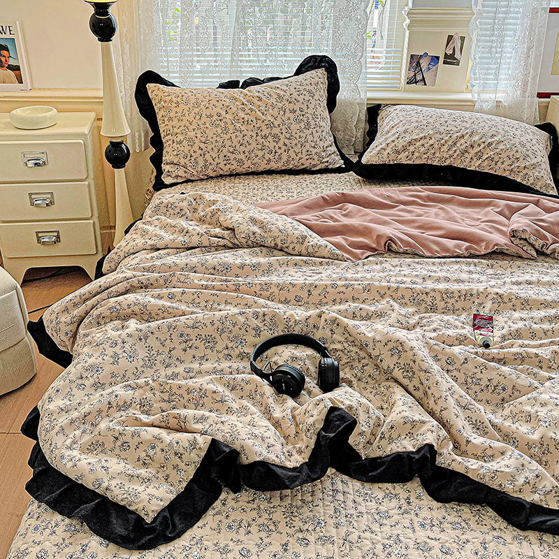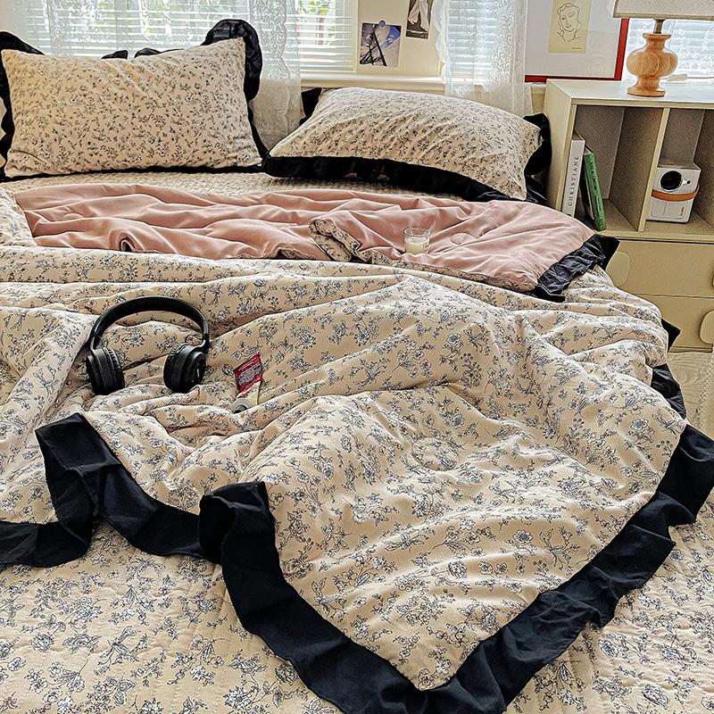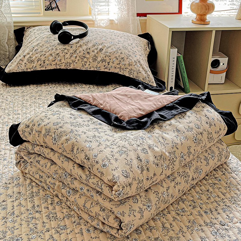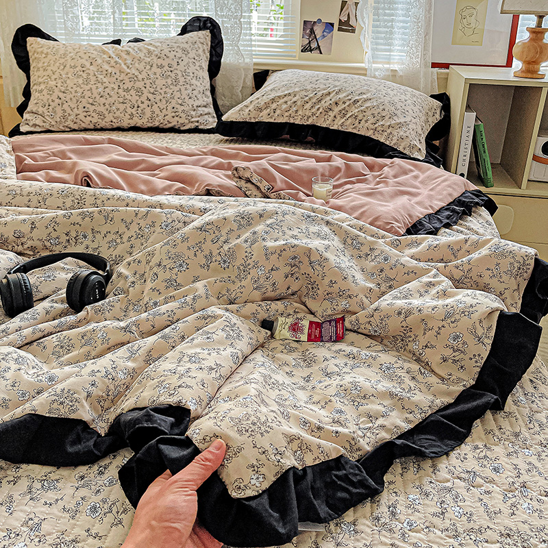 商品名称:米莱家纺 2025新款A类赫本风针织双层纱夏被床盖四件套 美式