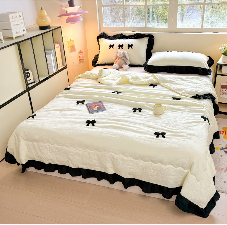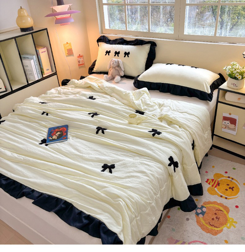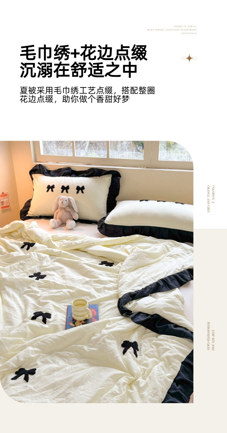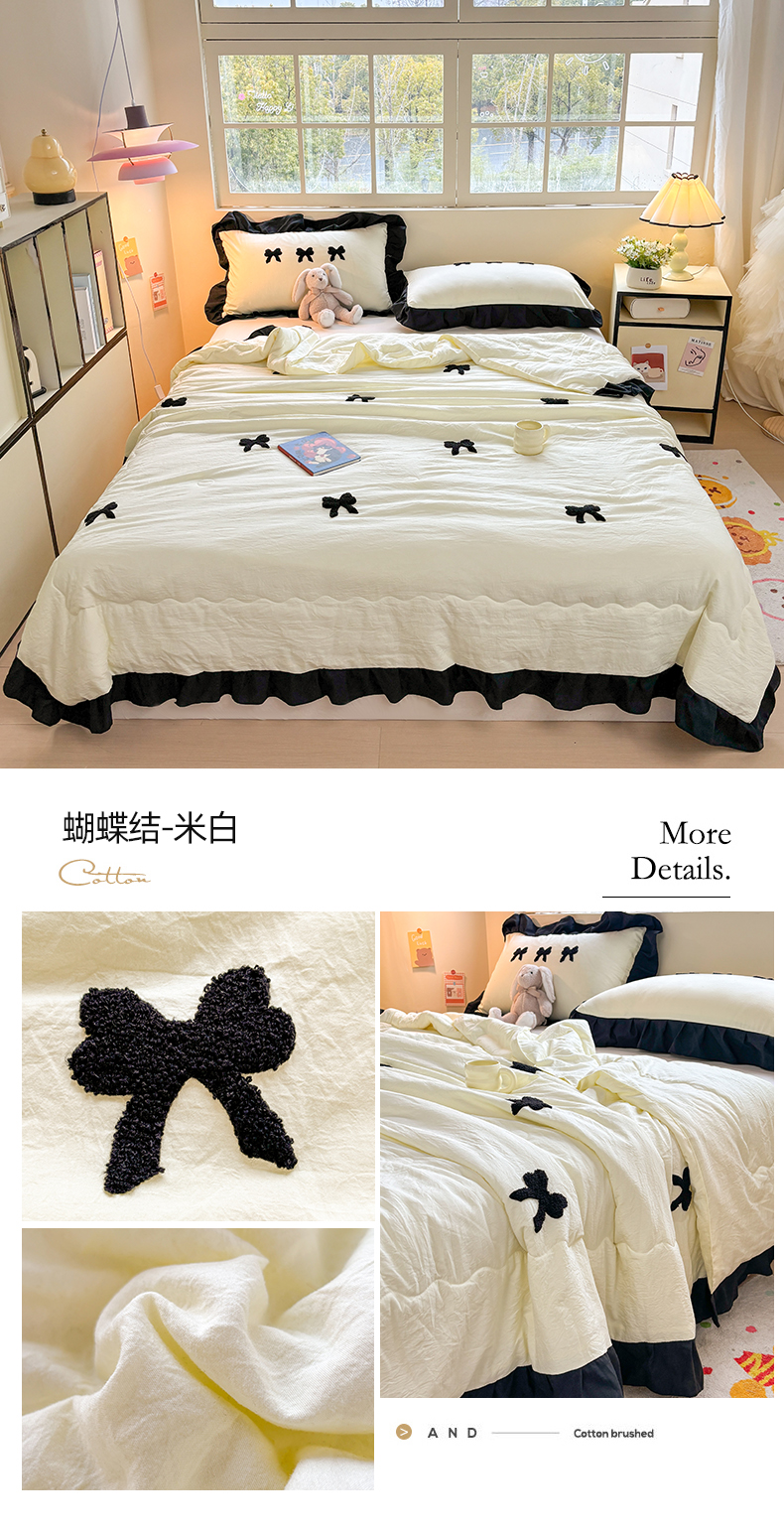 老K (原美阁) 2025新款毛巾绣韩版单夏被空调被单品 蝴蝶结-米白