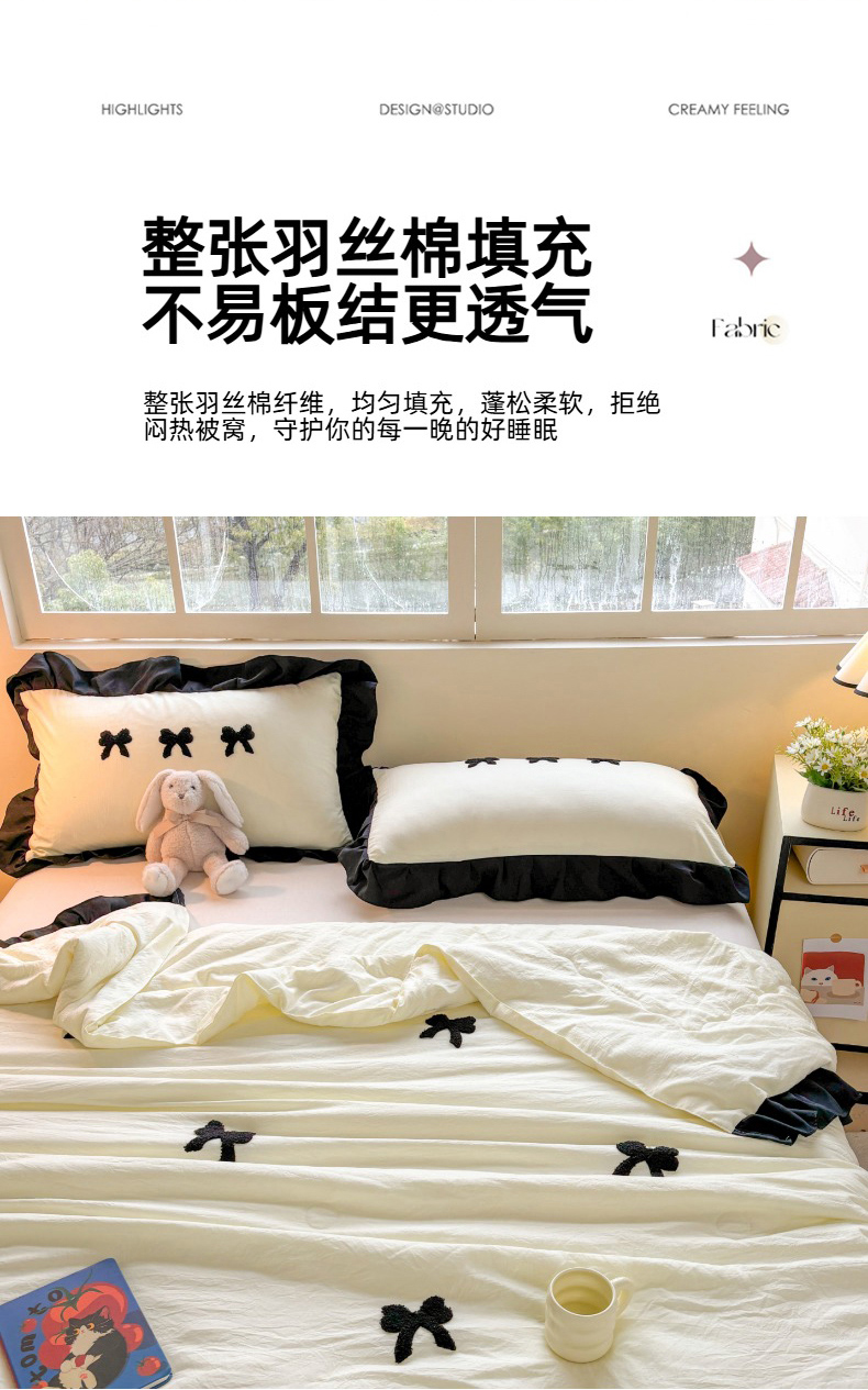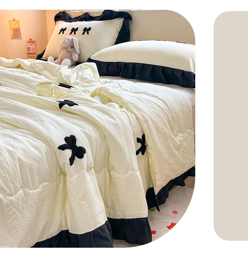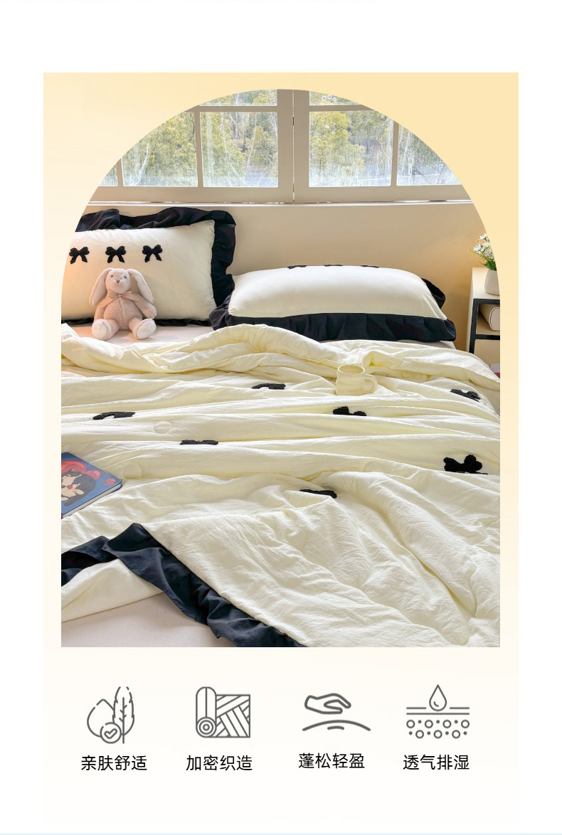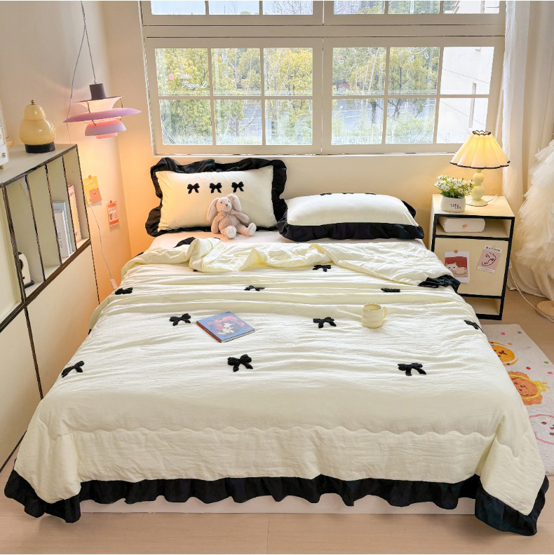 老K (原美阁) 2025新款毛巾绣韩版单夏被空调被单品 蝴蝶结-米白