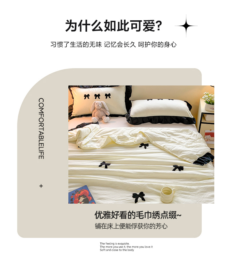 (总)老K (原美阁) 2024新款水洗棉蝴蝶结刺绣韩版水洗棉四件套,小香风-白黑,小香风-奶油黄,小香风-香芋紫,小香风-樱花粉,小香风-优雅灰,小香风-珍珠白