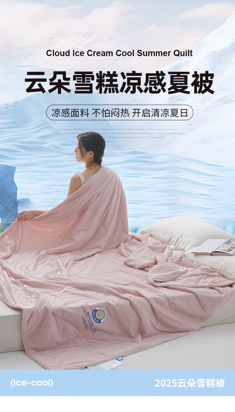 (总)亿梵家居2025春夏新款云朵雪糕凉感夏被夏凉被空调被,冰川蓝,奶茶米,胭脂粉