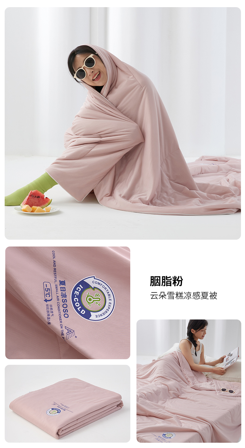 商品名称:亿梵家居2025春夏新款云朵雪糕凉感夏被夏凉被空调被 胭脂粉