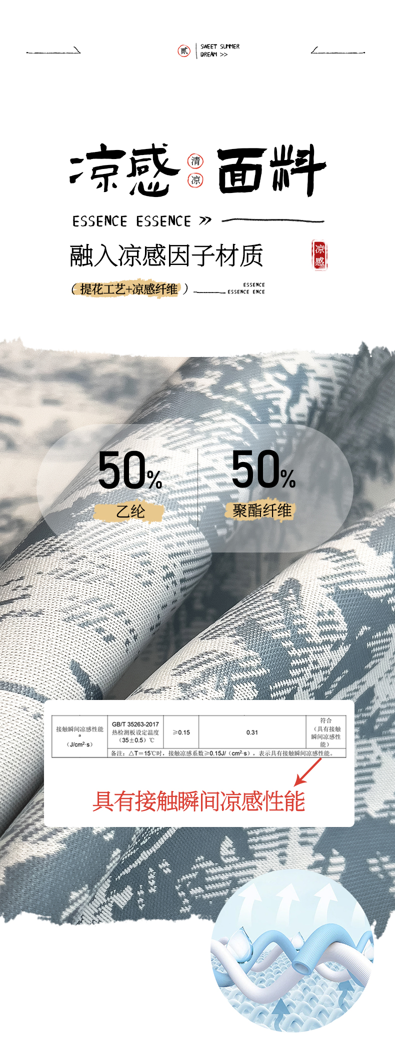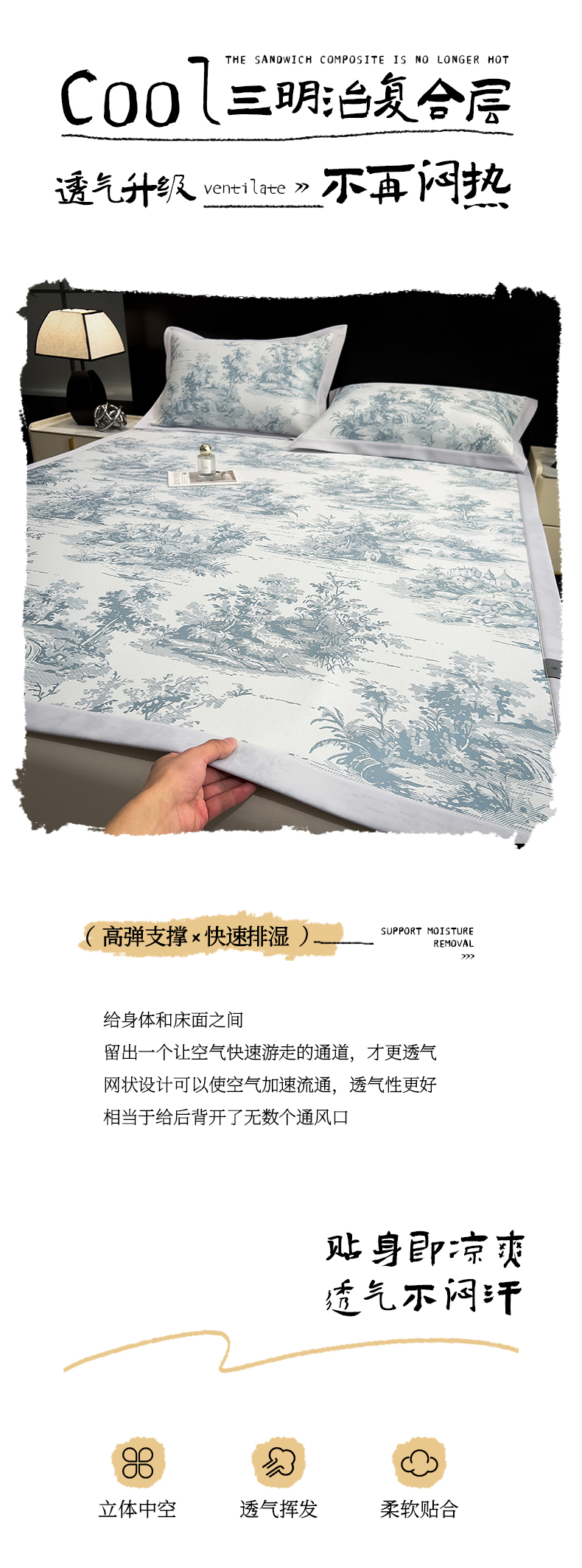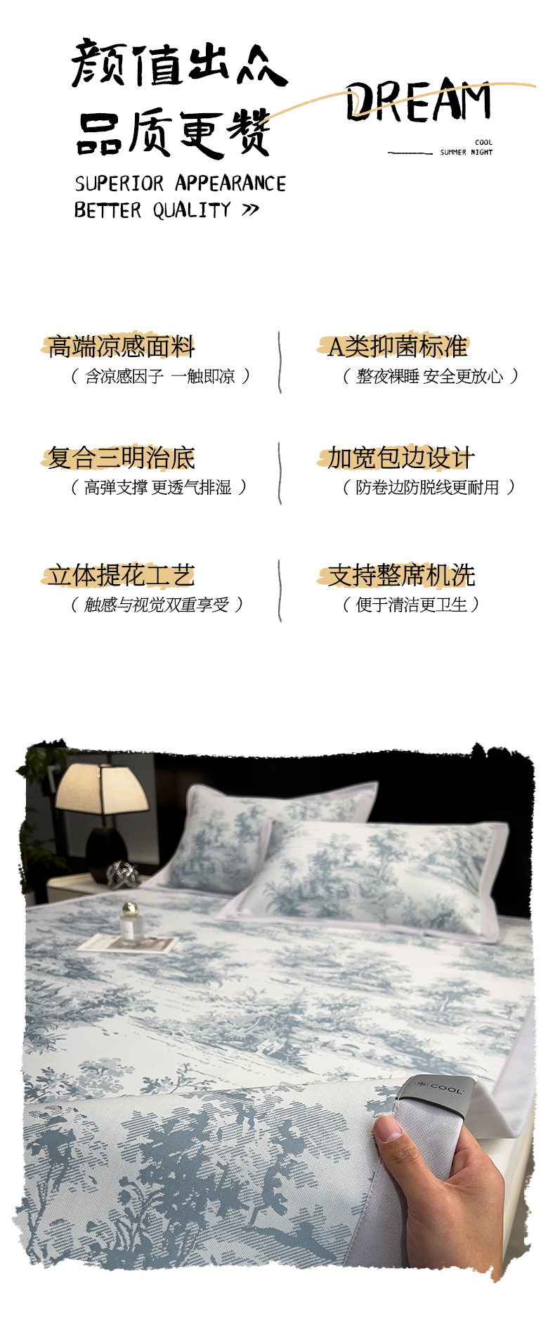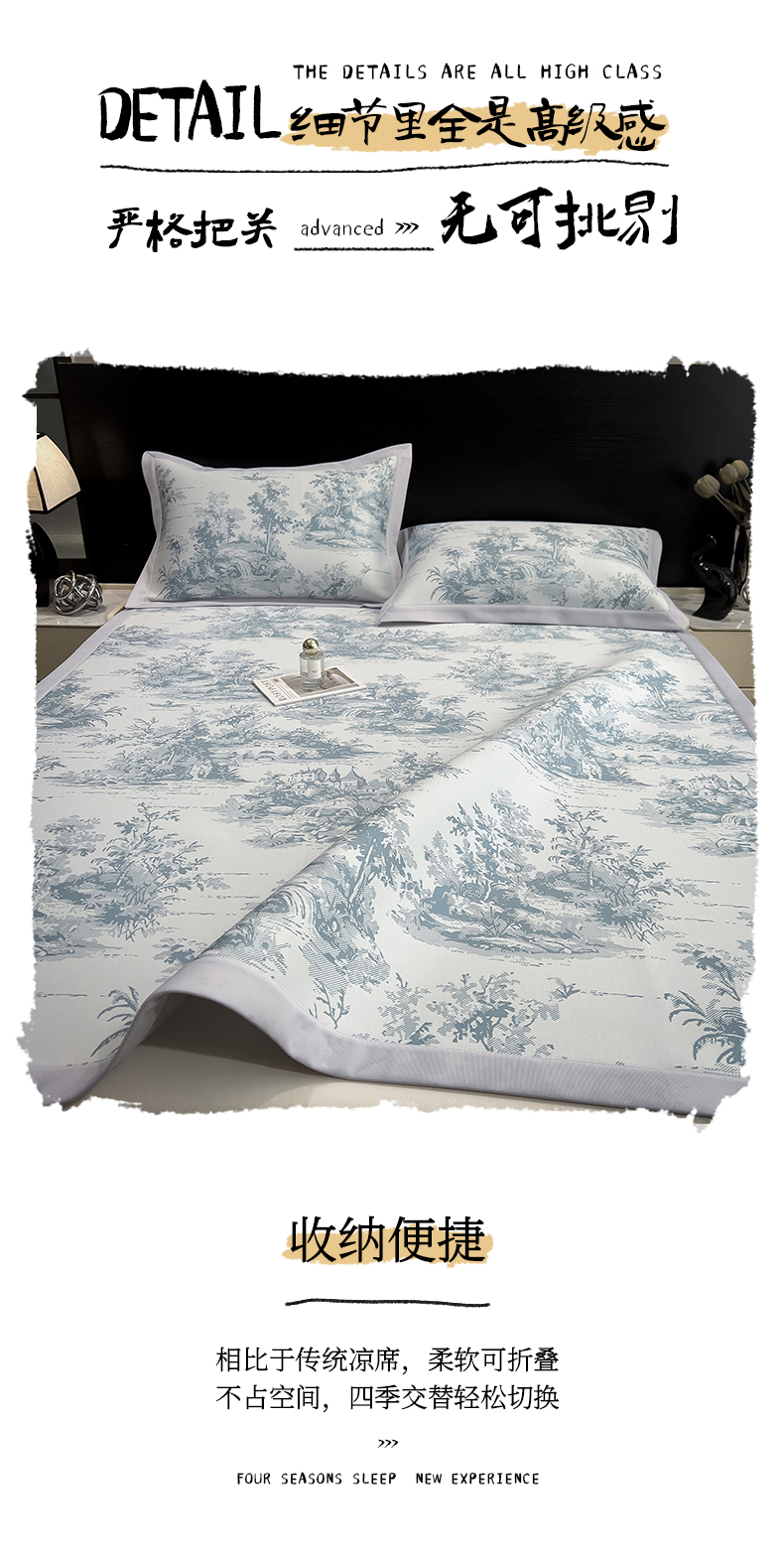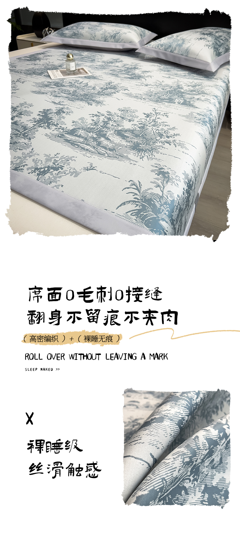商品名称:倾慕家纺 2025新款简约PE50提花凉感席席子凉席-床席款 梦境蓝PE床席款