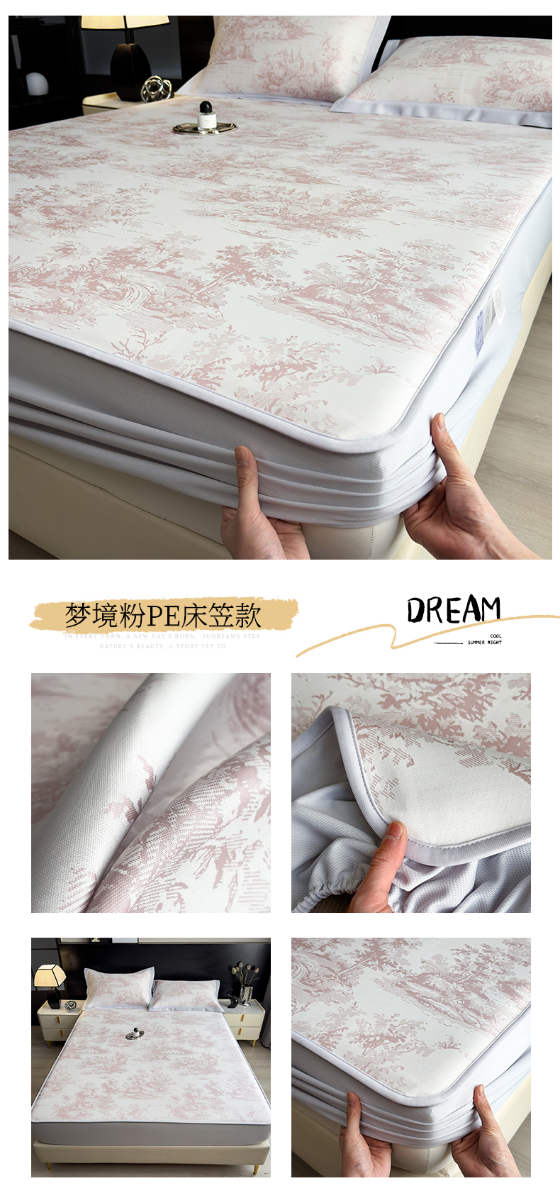 (总)倾慕家纺 2025新款简约PE50提花凉感席席子凉席-床笠款