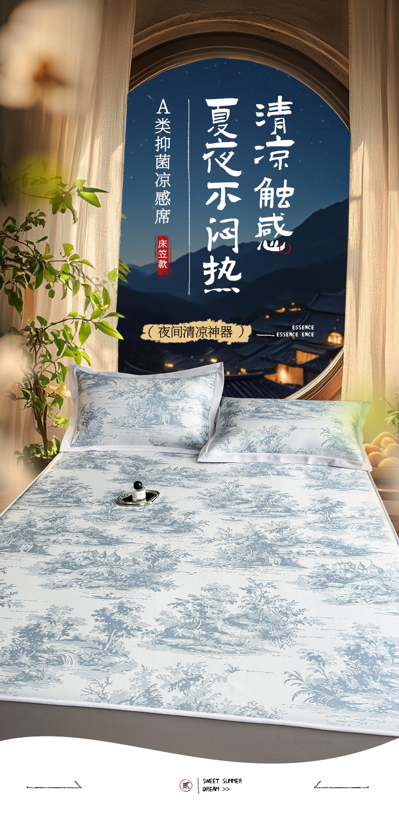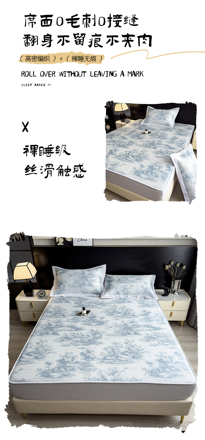 商品名称:(总)倾慕家纺 2025新款简约PE50提花凉感席席子凉席-床笠款