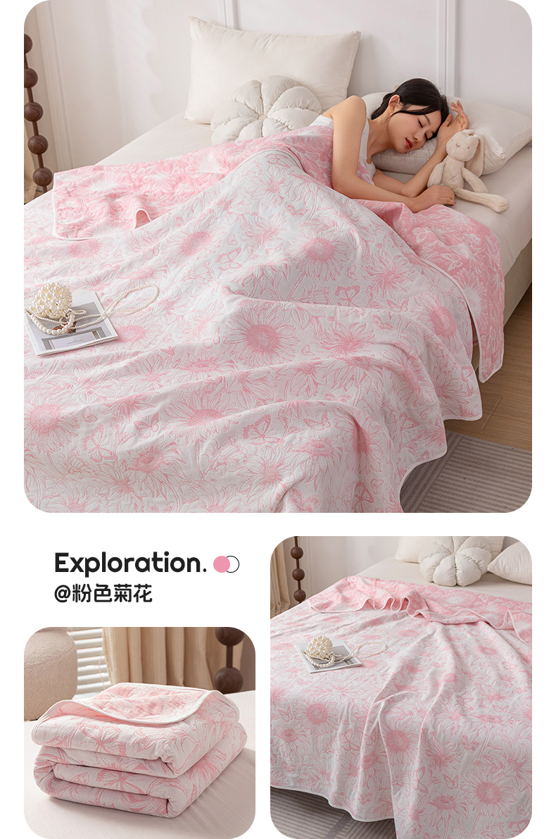 商品名称:乐家毛巾被(工厂自产自销) 2025春夏新款亲肤舒适六层纱布被 粉色向日葵