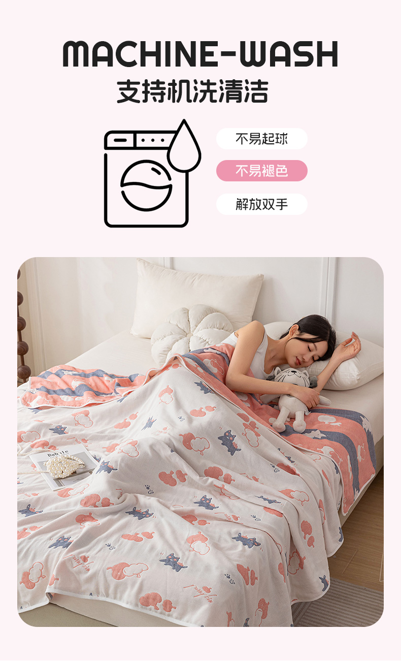 (总)乐家毛巾被(工厂自产自销) 2025新款A类全棉六层纱印花毛巾被,白色棉朵,彩蝶,彩虹小熊,动物派对,多彩南瓜,格子花花,黄油小熊,简笔森林,卡通狗狗,绿色茶花,莫比乌斯环,水墨花开,兔子小狗,吴丹花开,向日葵,尤加利,油画雏菊,happy腊肠狗