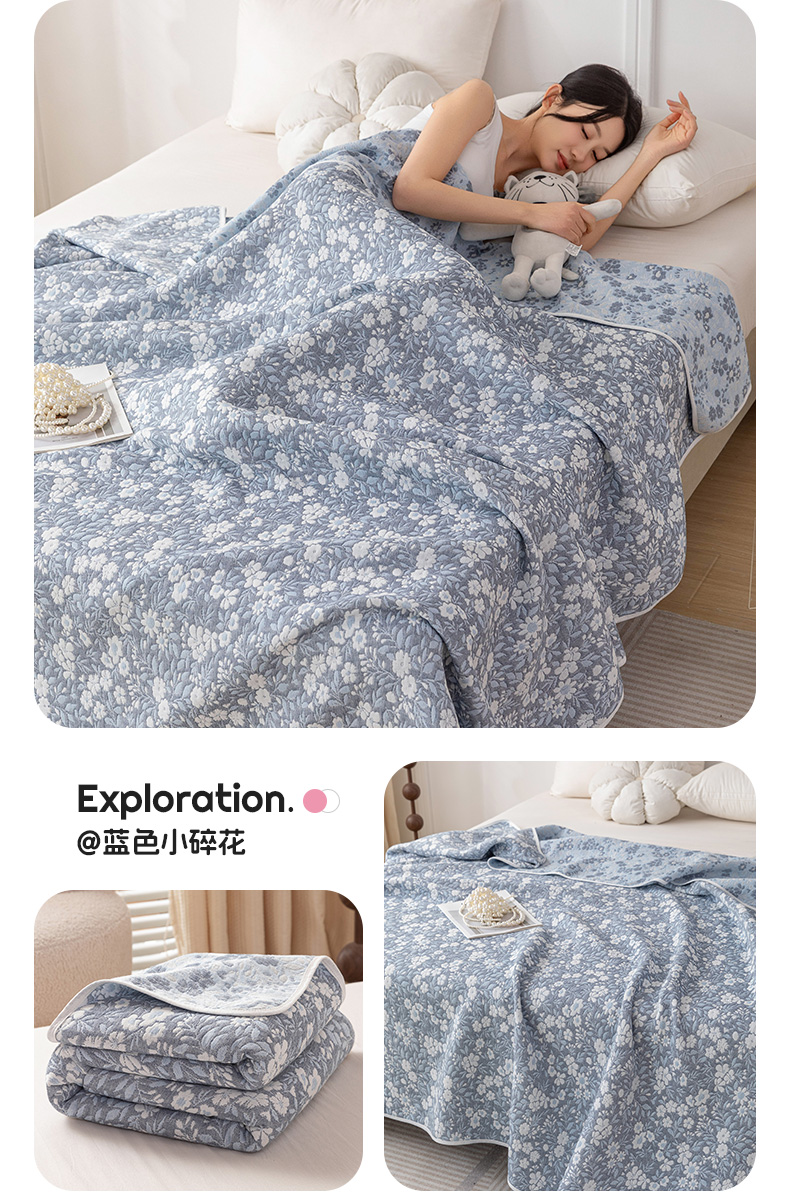 商品名称:乐家毛巾被(工厂自产自销) 2025春夏新款亲肤舒适六层纱布被 蓝色小碎花