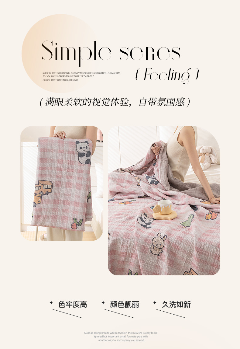 商品名称:乐家毛巾被(工厂自产自销) 2025春夏新款三层全棉纯棉印花毛巾被 简笔画