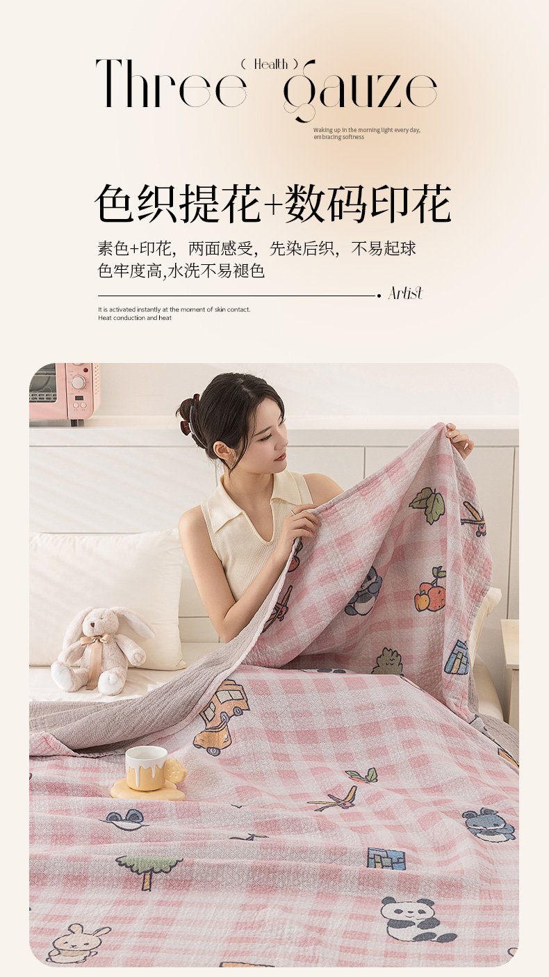 商品名称:乐家毛巾被(工厂自产自销) 2025春夏新款三层全棉纯棉印花毛巾被 熊猫兔子