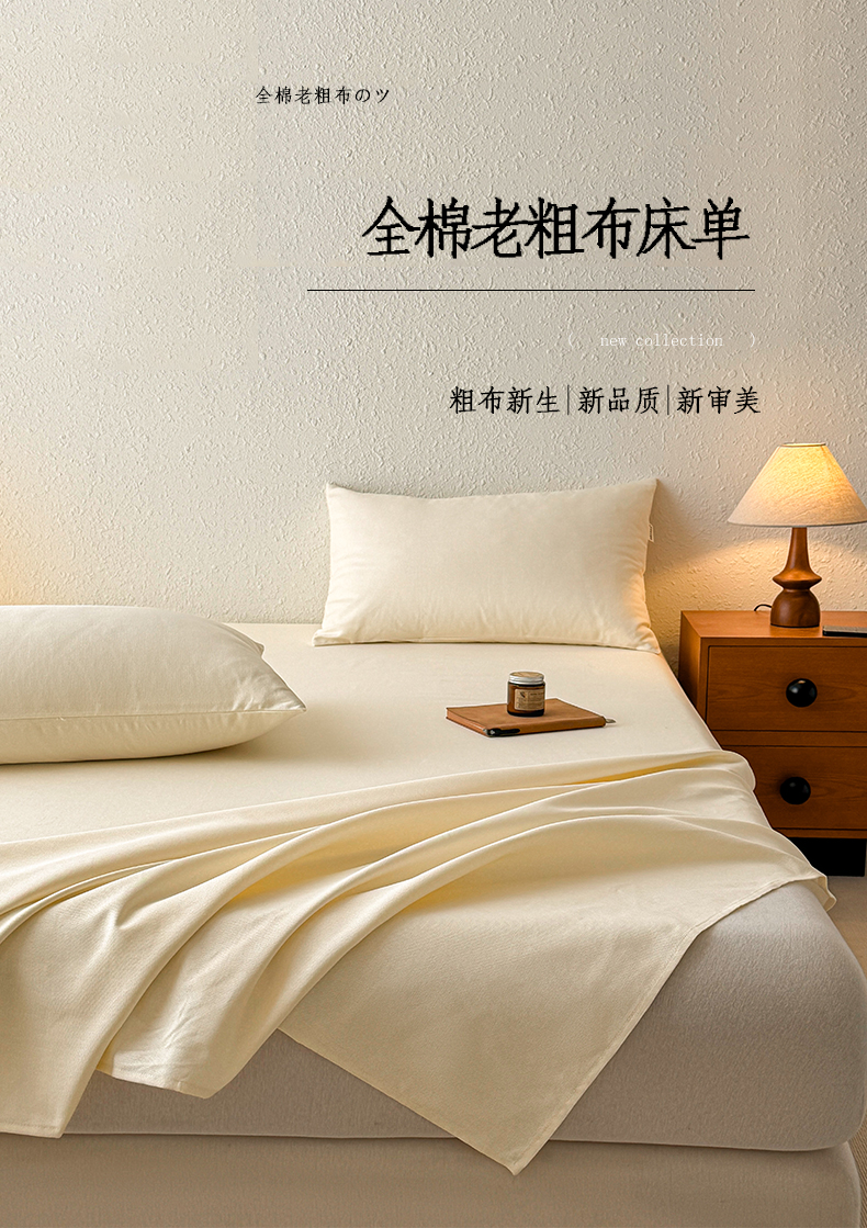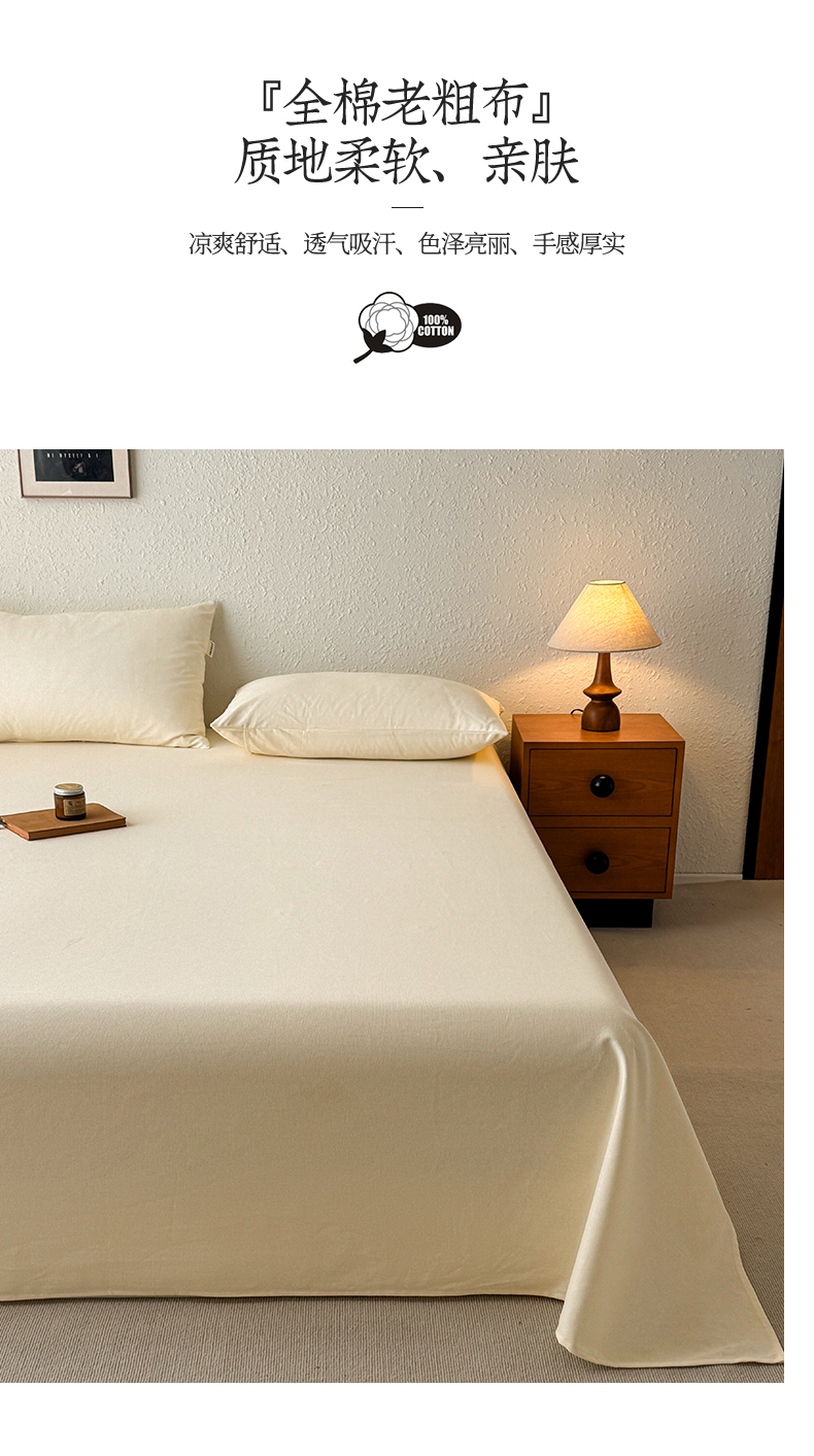 (提供买家秀 爆款花型 不断货)2025新款全棉纯色老粗布单床单 月白白