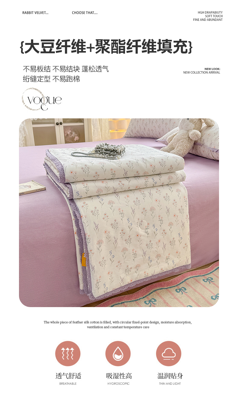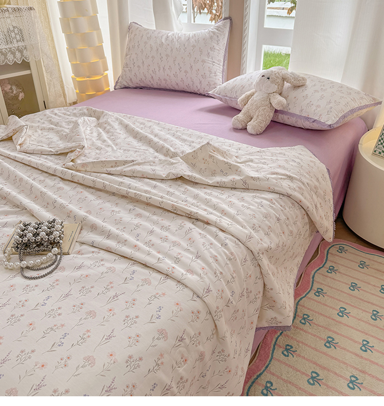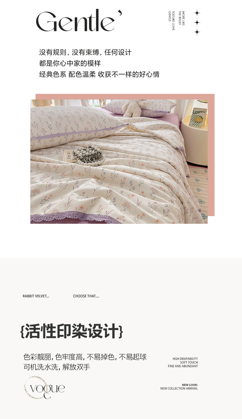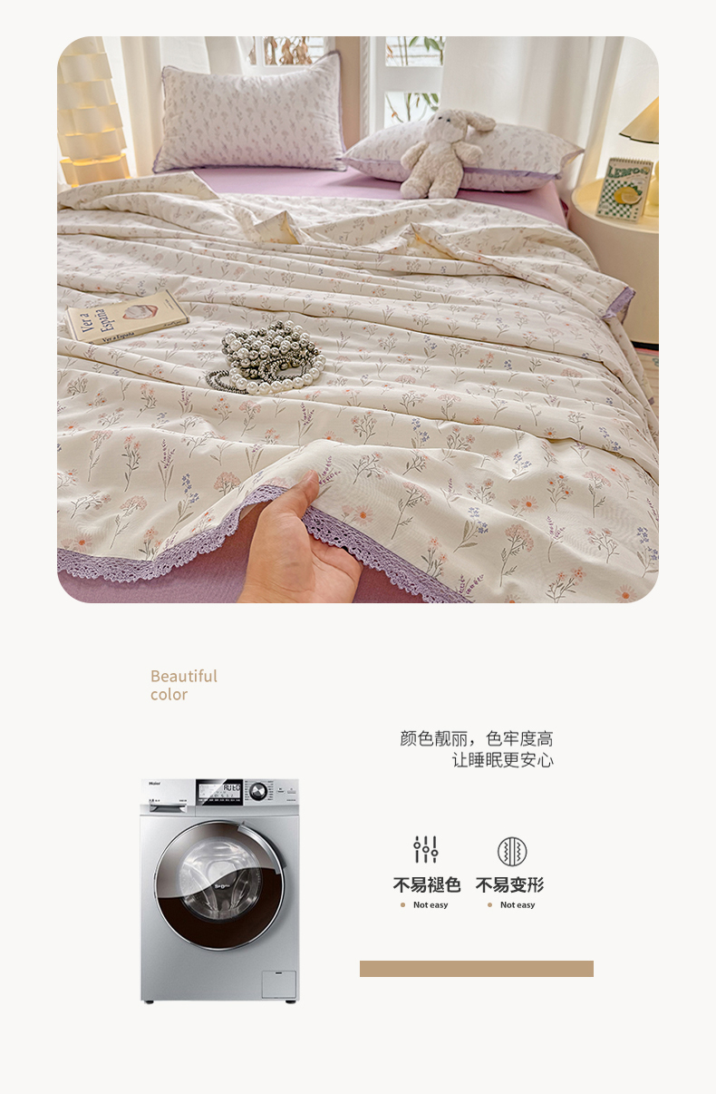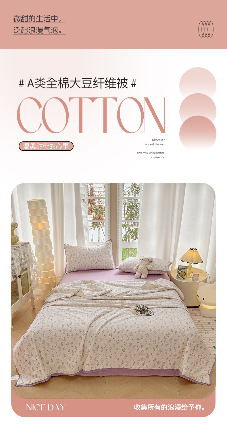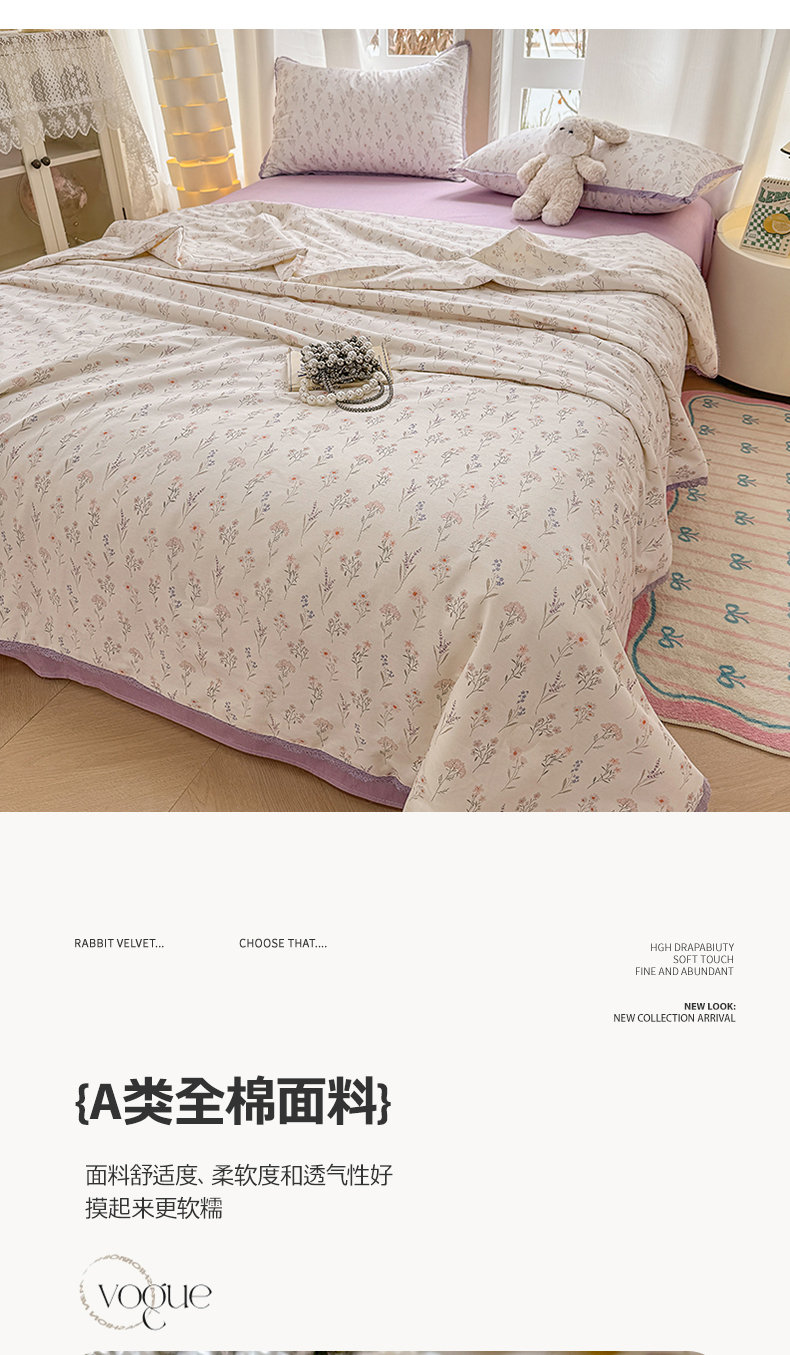 • 91家纺网 家纺一手货源 找家纺 梦依依 2025新款小清新印花系列全棉夏被大豆夏被