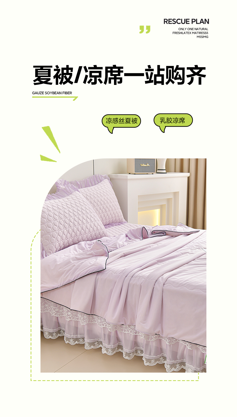 当前位置: 91家纺网 > 商品网购 > 床品套件 > 三件套 > 民新家纺 2025新款凉感丝乳胶床裙凉席足球花系列纯色和印花唯美-云紫