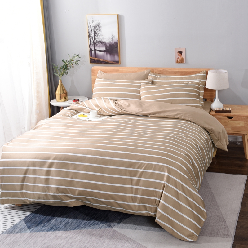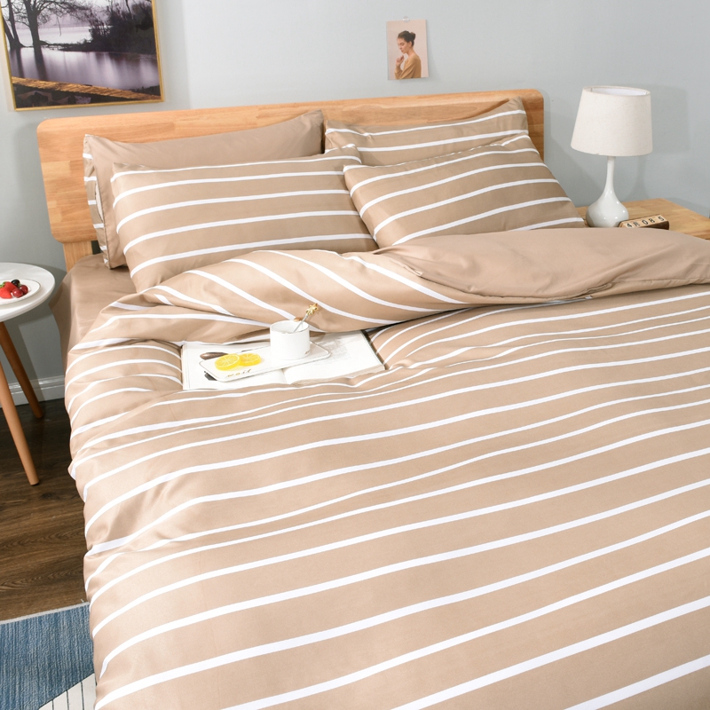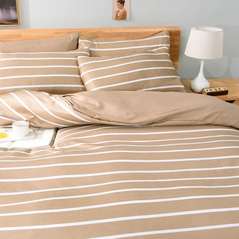 百花王2025新款斜纹天丝莫代尔四件套 驼色条纹