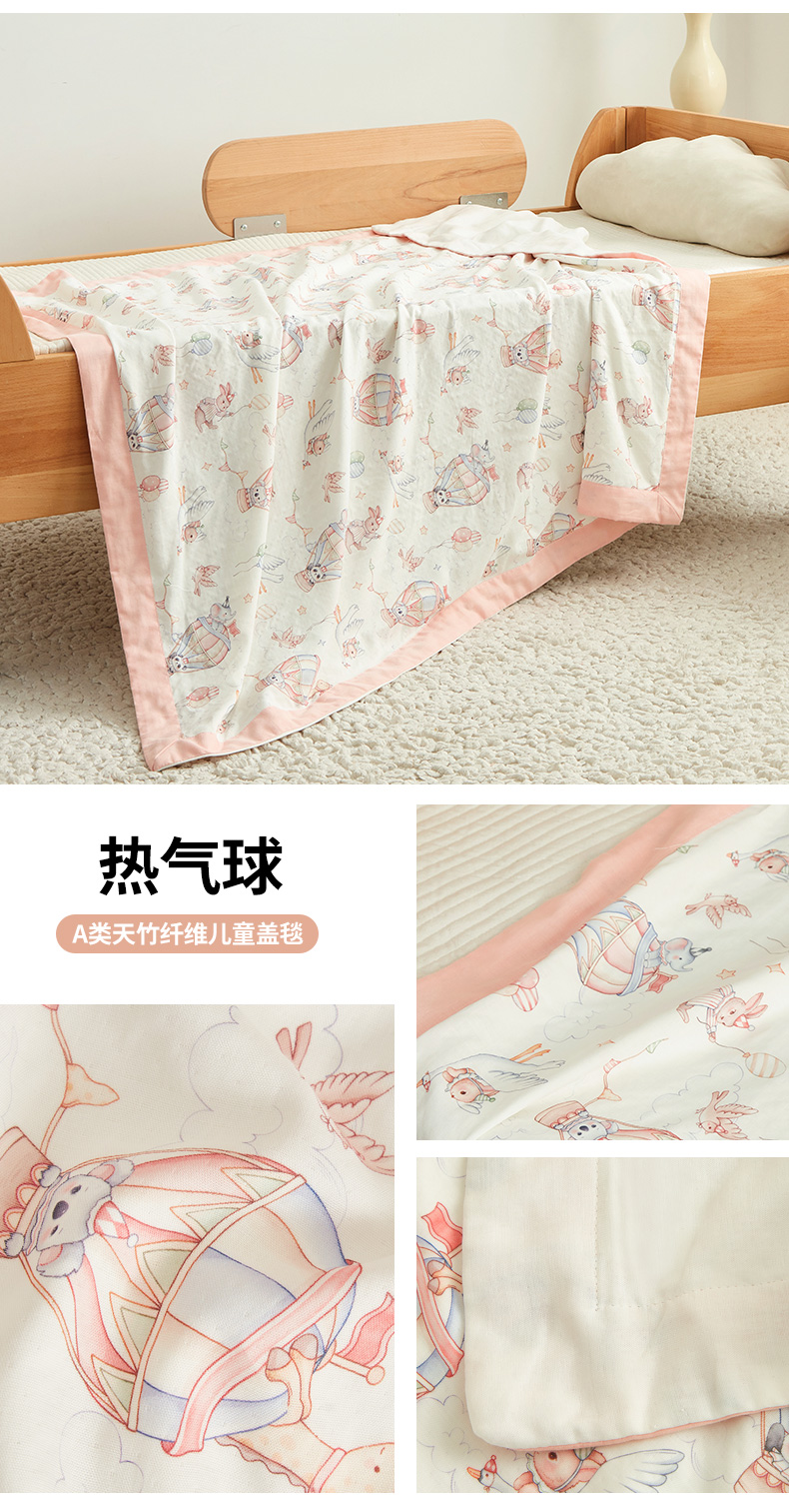 商品名称:嗨生活 2025年新品天竹系列A类竹纤维四层纱儿童盖毯 幼儿园夏被夏凉被空调被 热气球