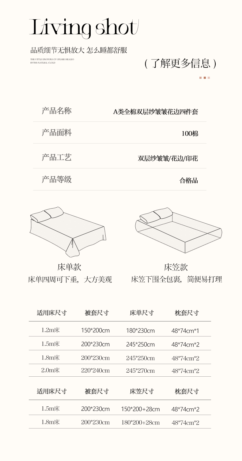 商品名称:蓝邻家纺 2025新款全棉纯棉双层纱绉绉花边四件套系列 半亩花田