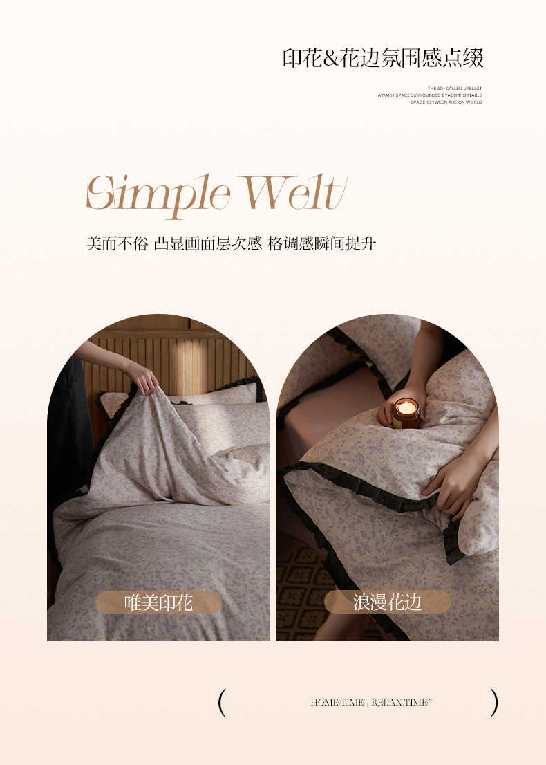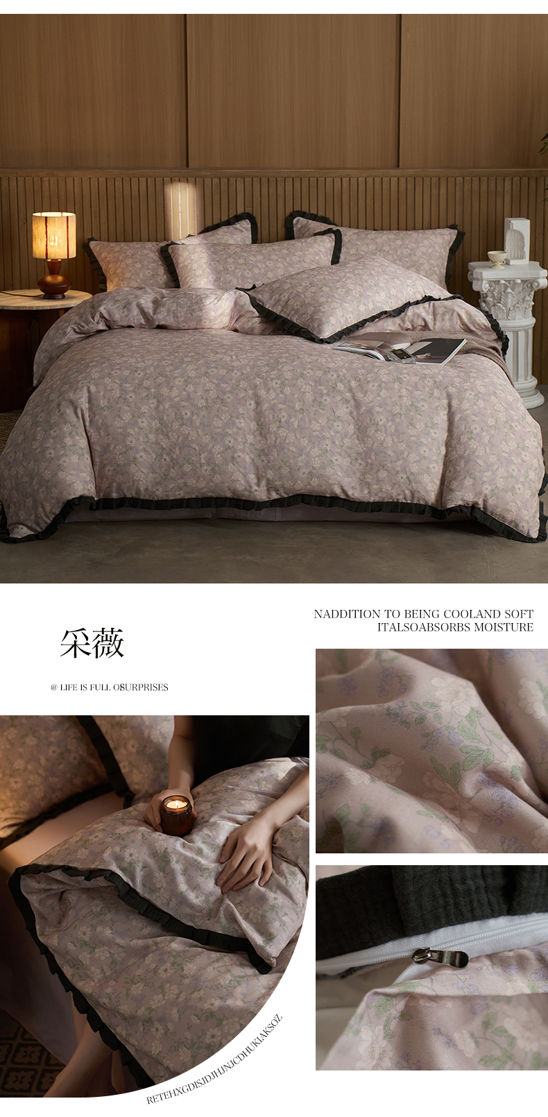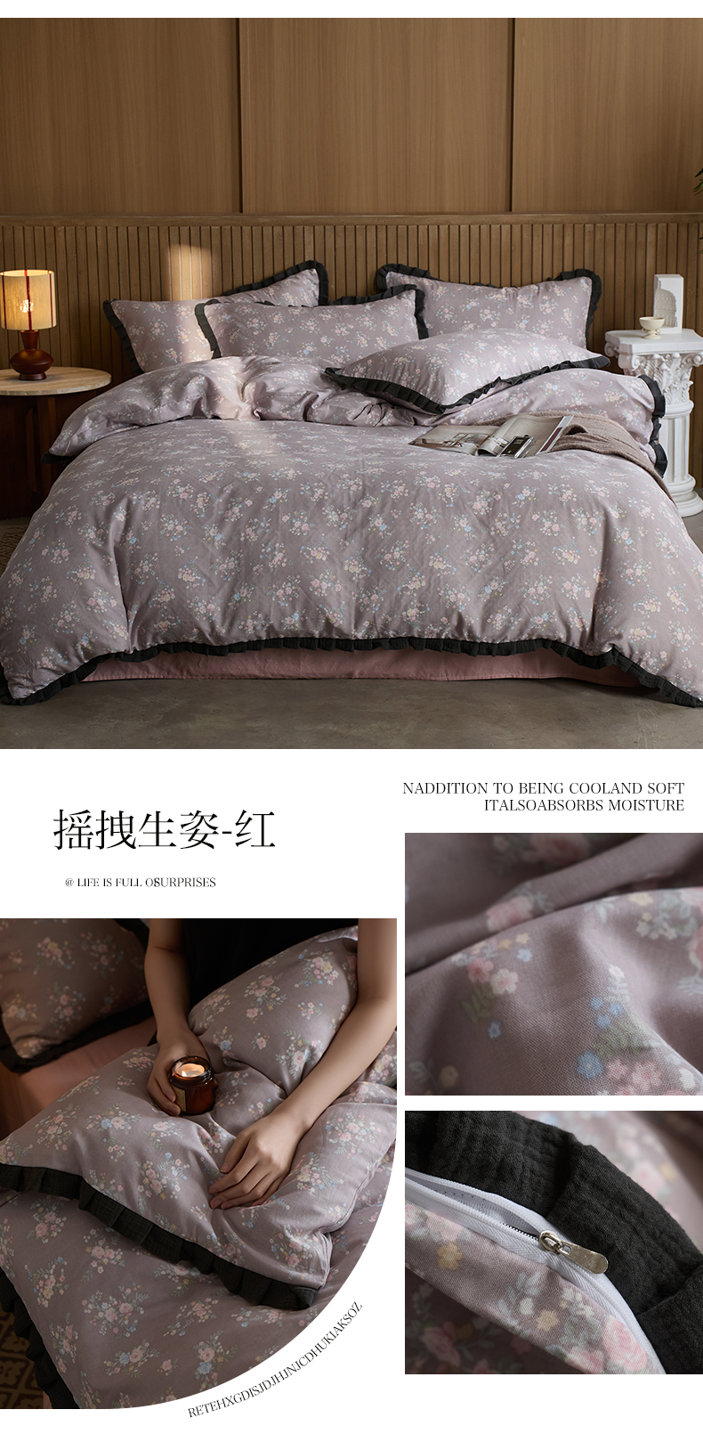 蓝邻家纺 2025新款全棉纯棉双层纱绉绉花边四件套系列 半亩花田