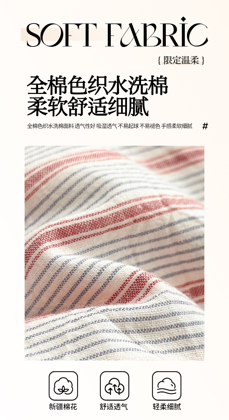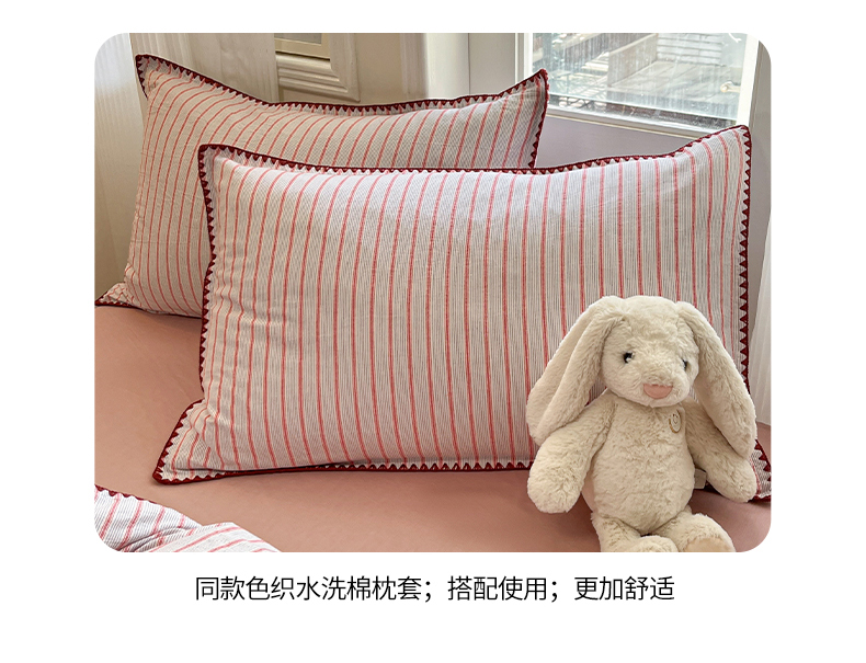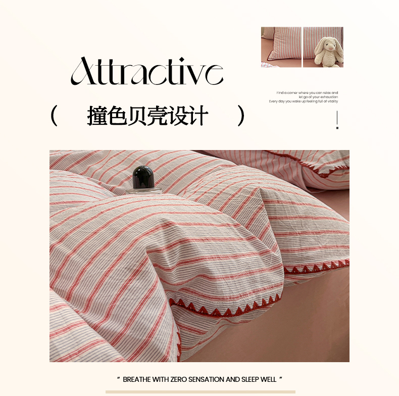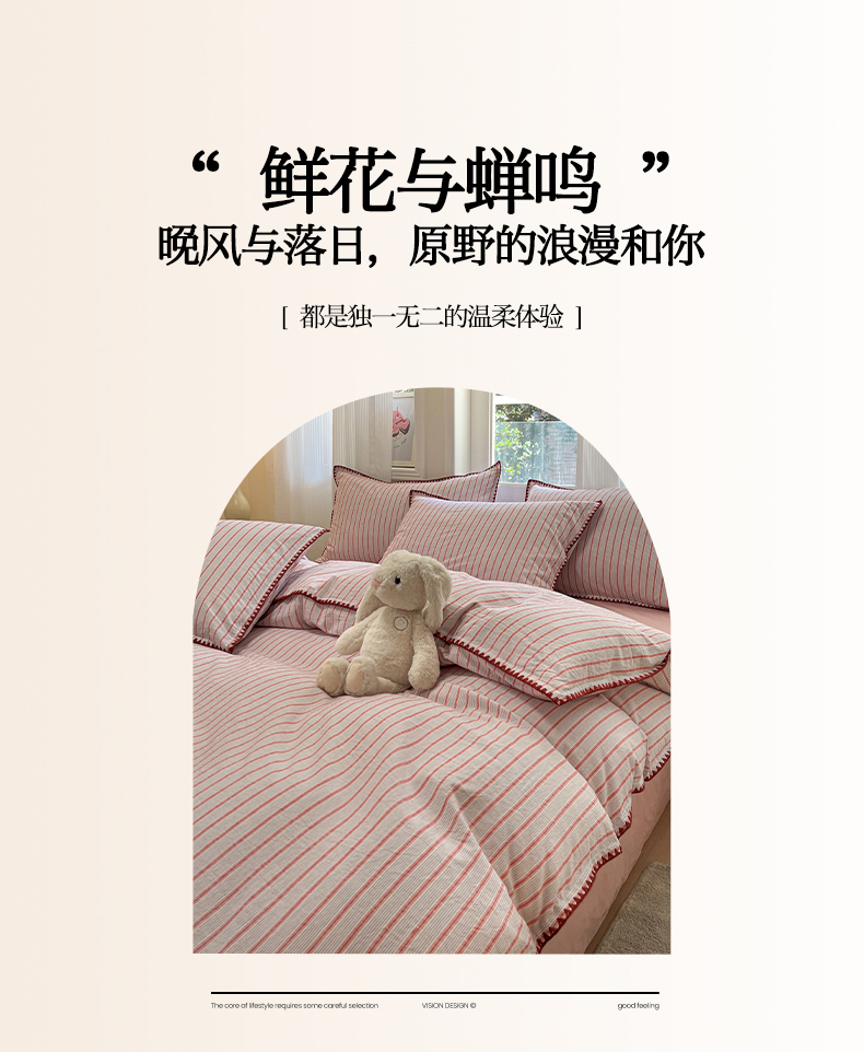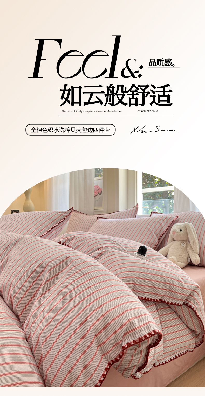 当前位置: 91家纺网 > 商品网购 > 床品套件 > 四件套 > 全棉活性四件套 > 莱茵家居 2025新款全棉色织水洗棉贝壳包边四件套生椰系列 蜜桃苏打
