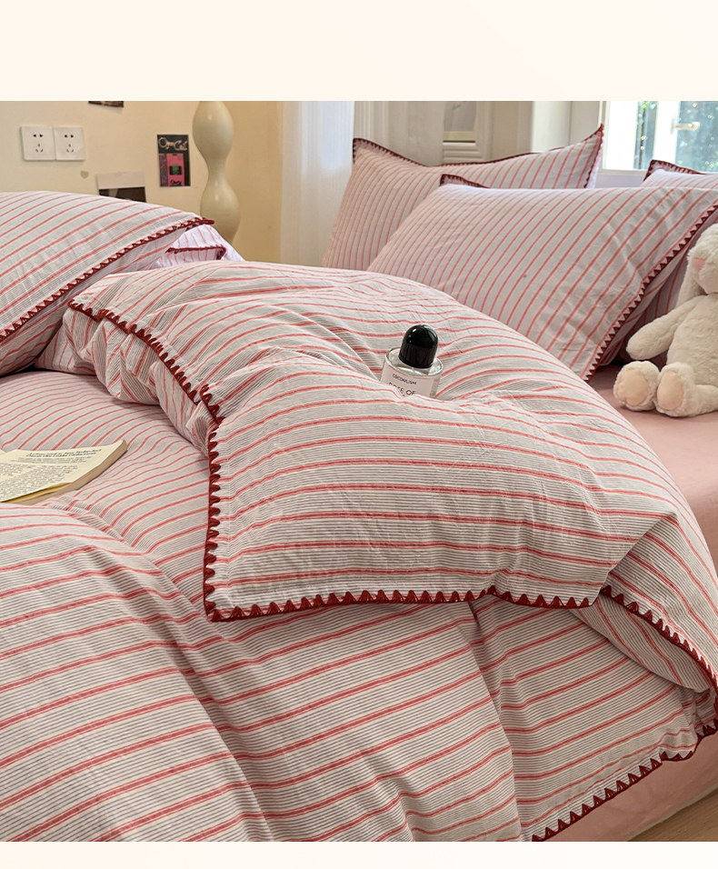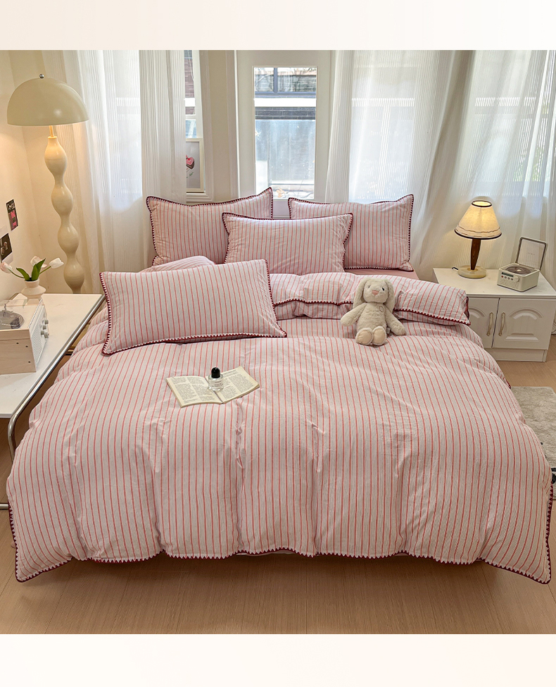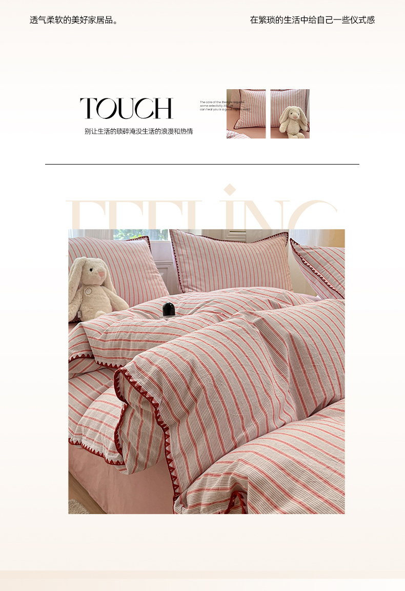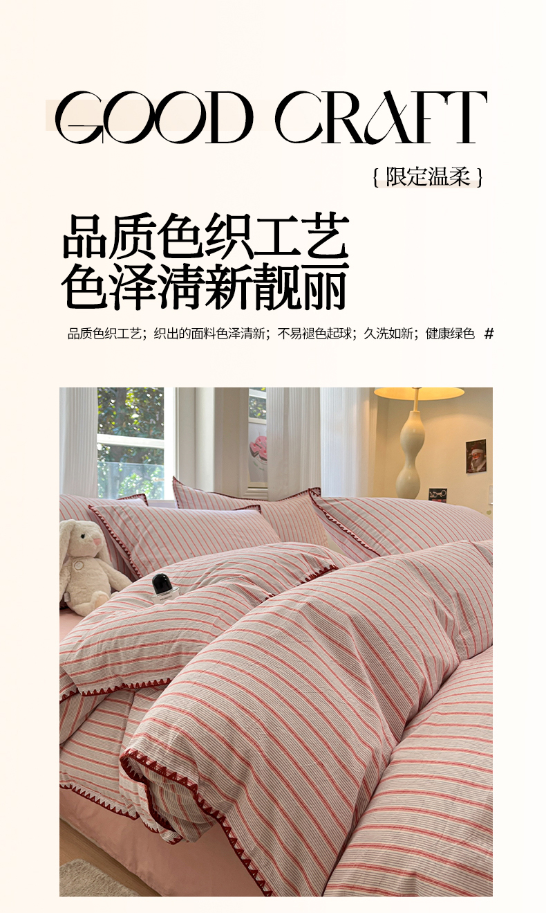 当前位置: 91家纺网 > 商品网购 > 床品套件 > 四件套 > 全棉活性四件套 > 莱茵家居 2025新款全棉色织水洗棉贝壳包边四件套生椰系列 蜜桃苏打